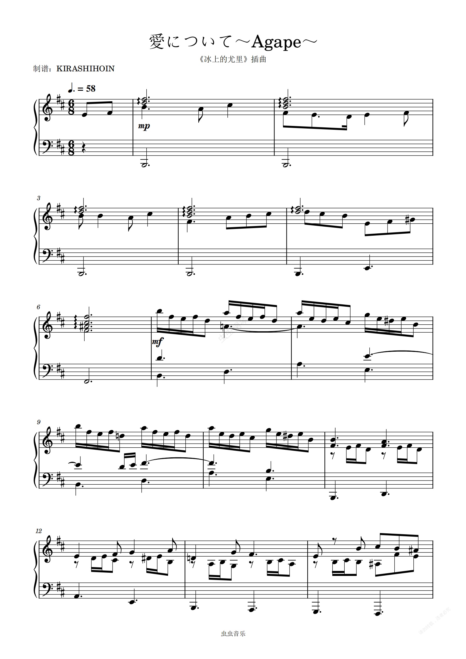 钢琴谱:关于爱~Agape~/愛について~Agape~(《冰上的尤里》插曲)