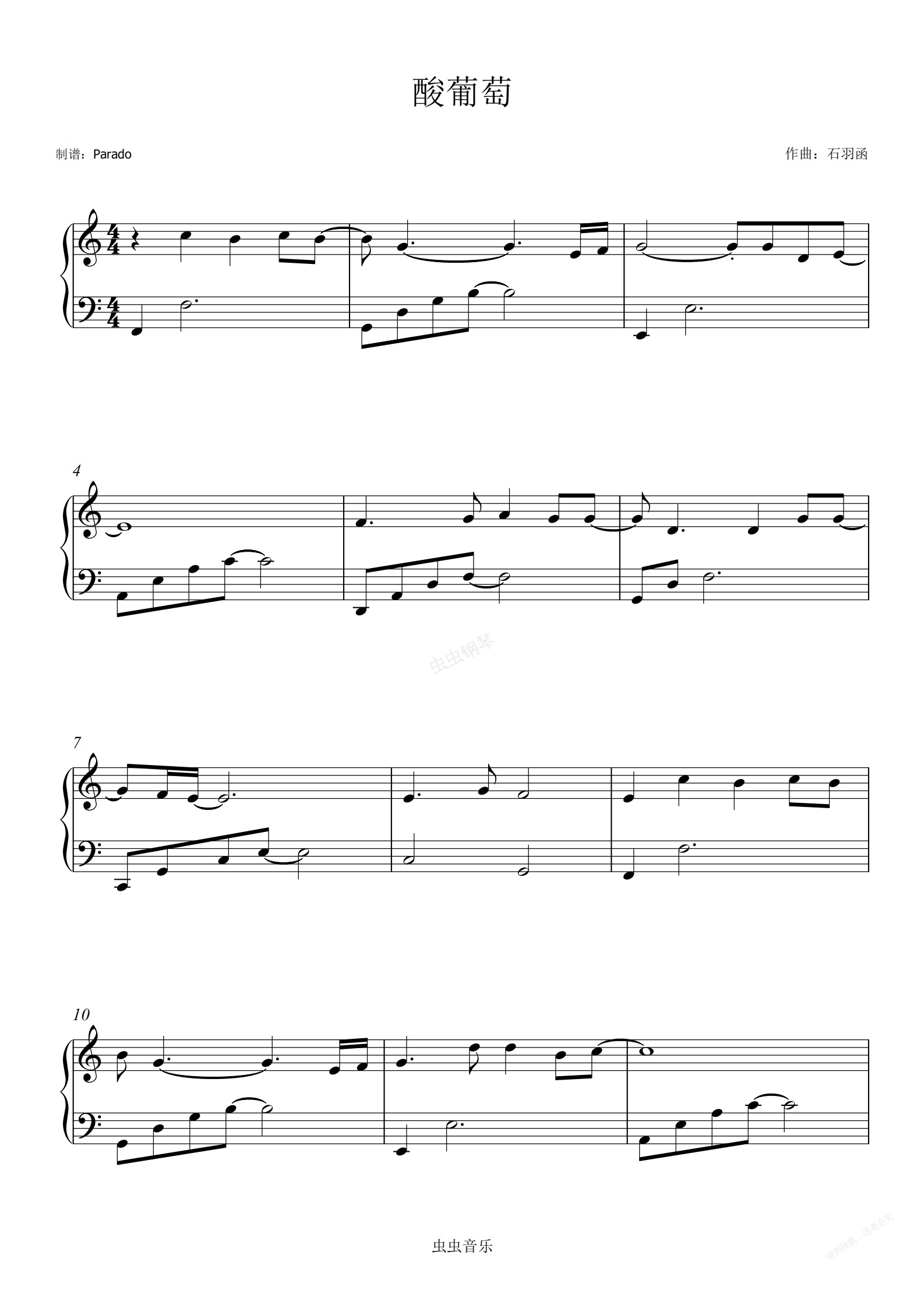 钢琴谱:酸葡萄-庄心妍-C调简单版-好听又好弹