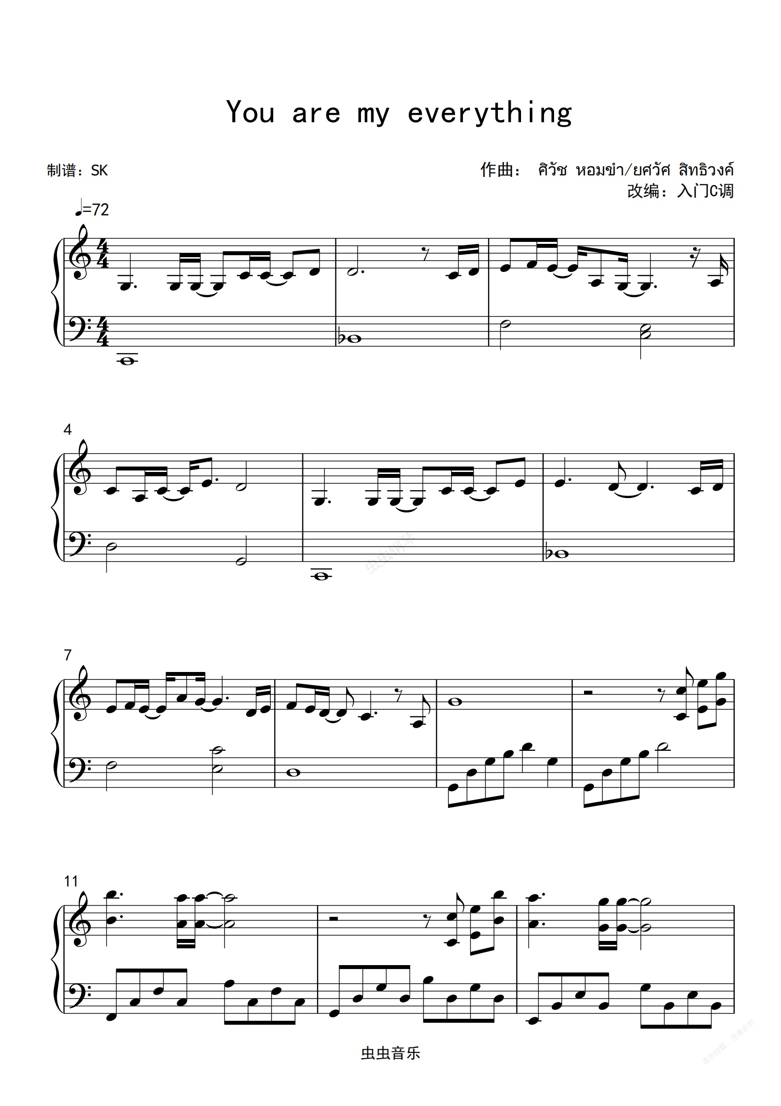 钢琴谱:比尔金(马群耀)—《You are my everything》C调抒情简单版