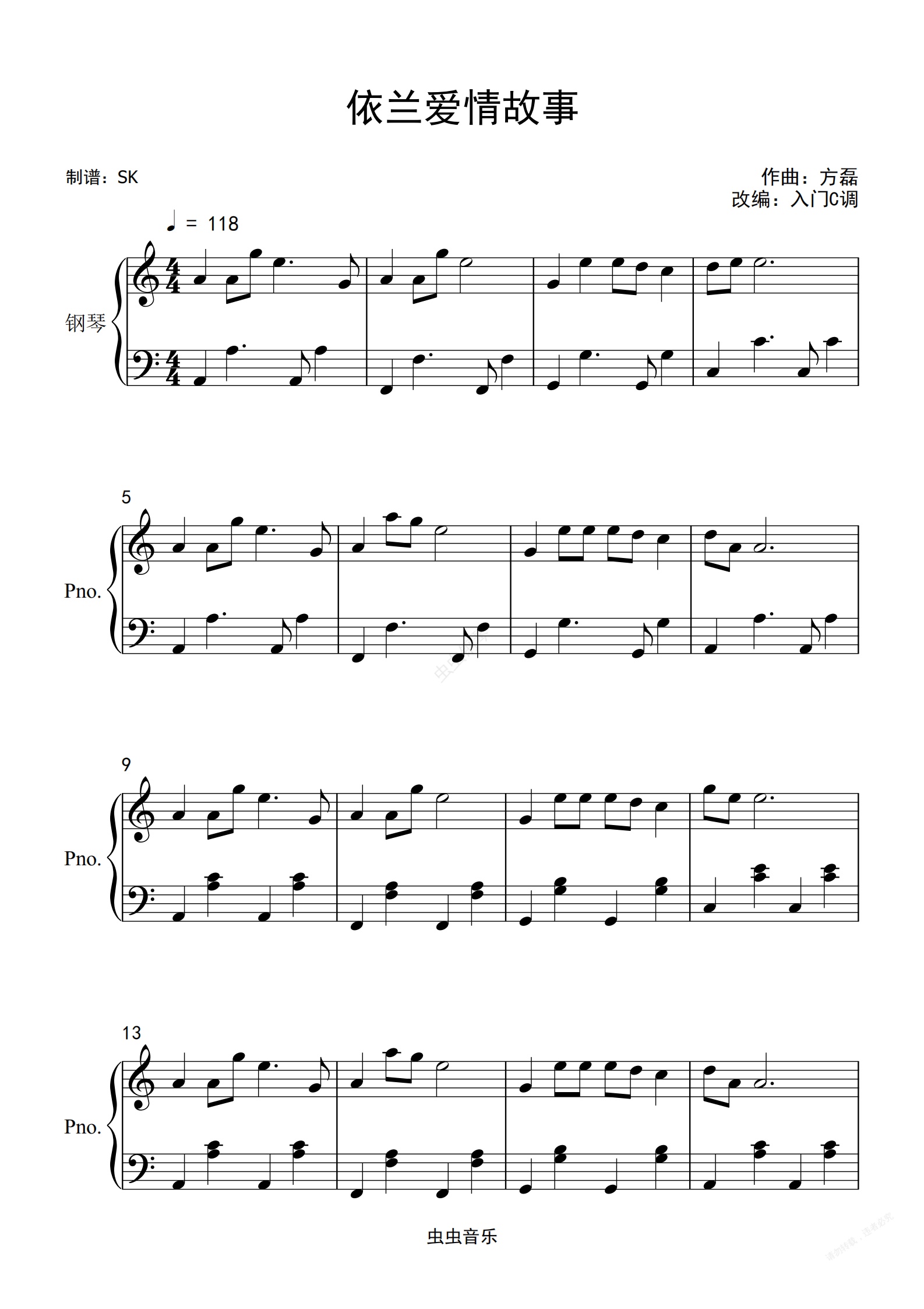 钢琴谱:《你好,李焕英》片尾曲—方磊《依兰爱情故事》C调简单版