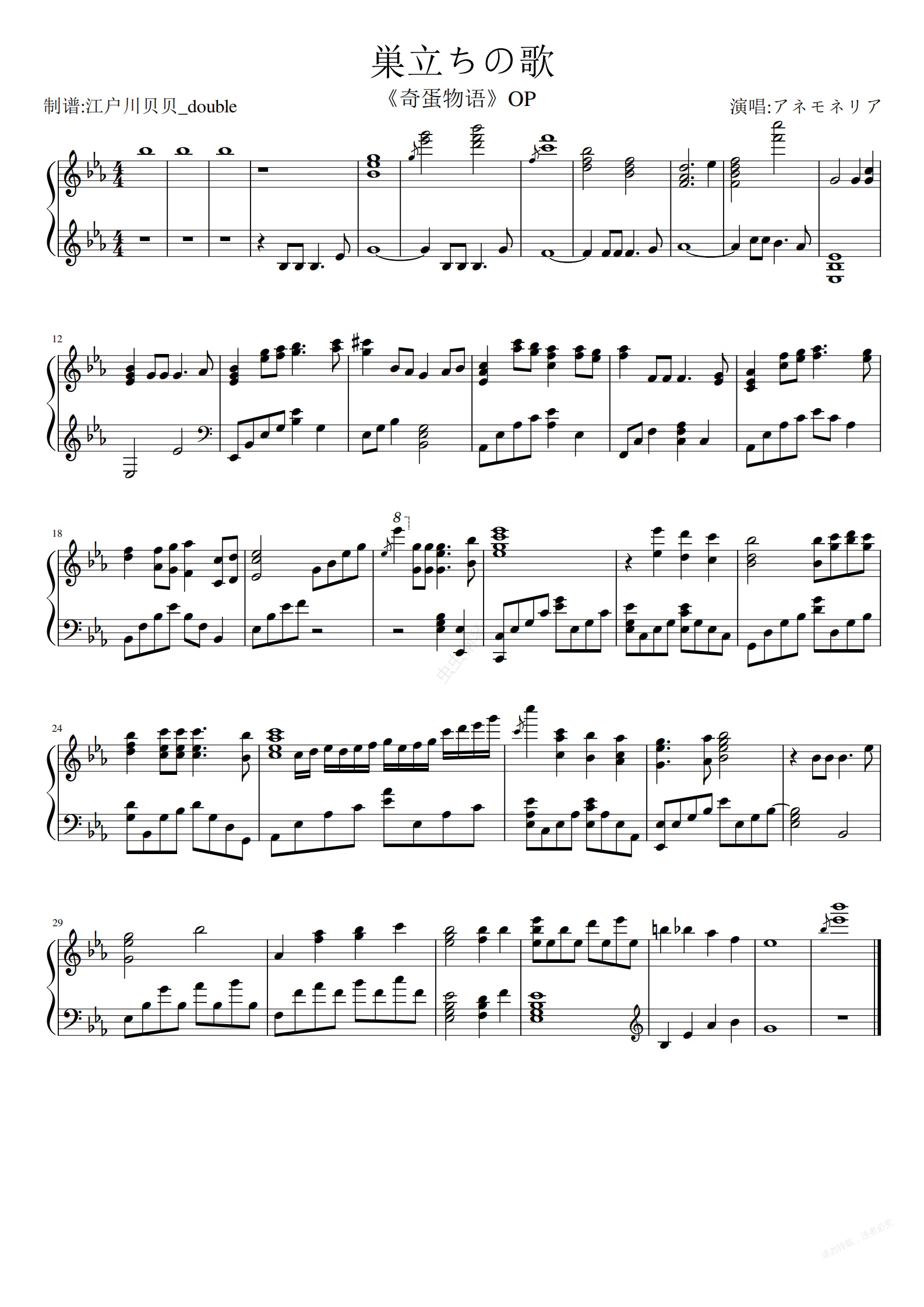 钢琴谱:【奇蛋物语】OP《巣立ちの歌》
