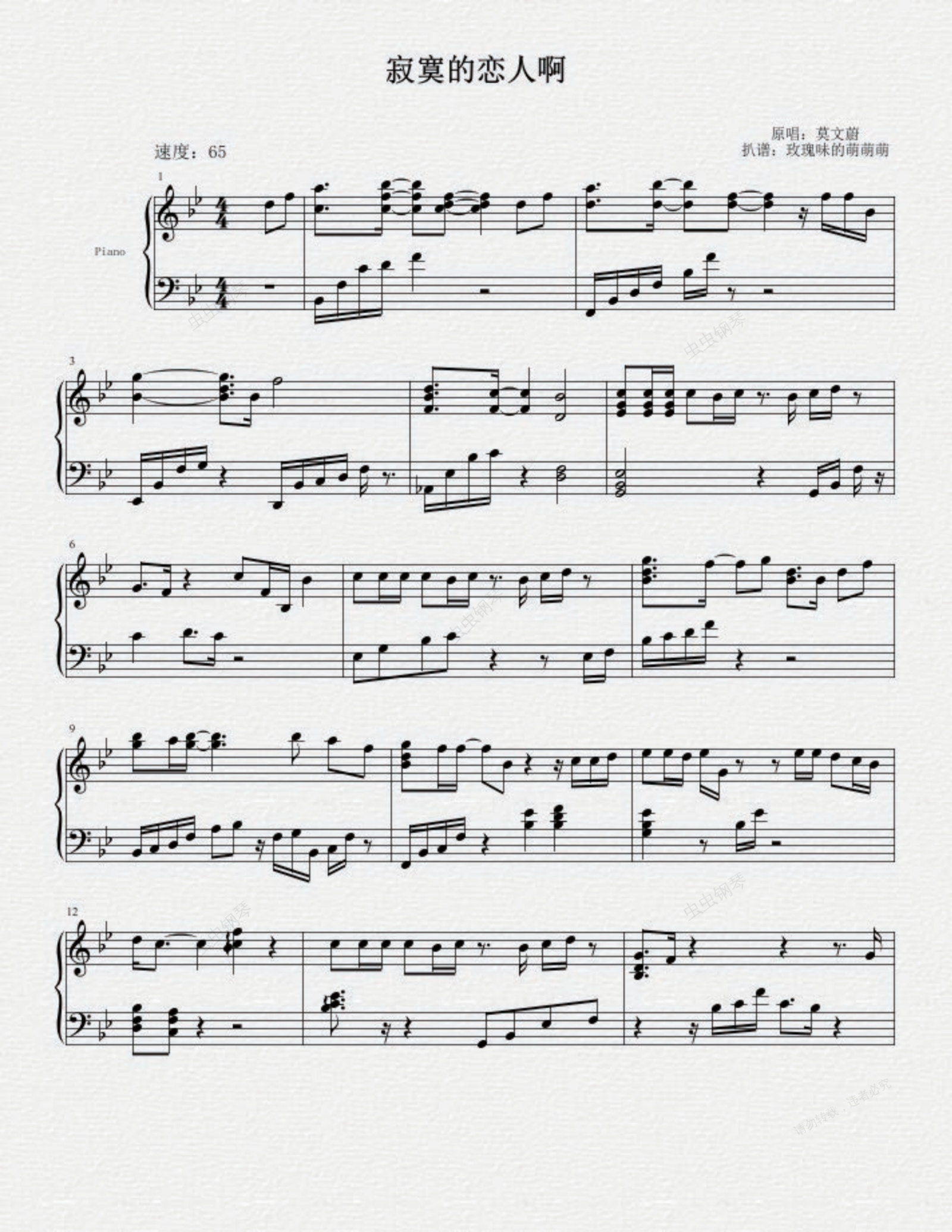 钢琴谱:寂寞的恋人啊-莫文蔚 简易版