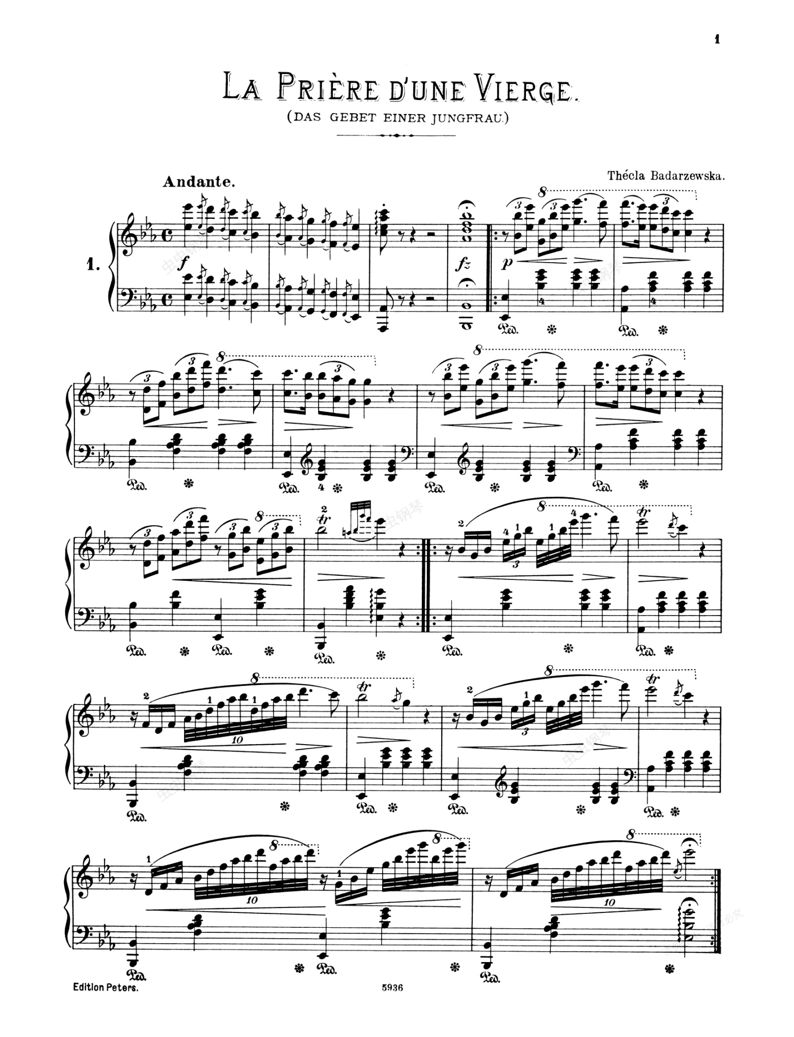 钢琴谱:少女的祈祷(原版)巴达尔切弗斯卡 Badarzewska-Baranowska: The Maiden's Prayer