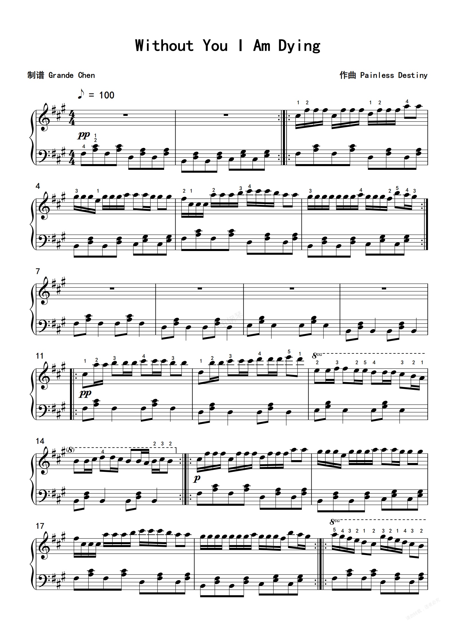 钢琴谱:Without You I Am Dying原版钢琴独奏谱
