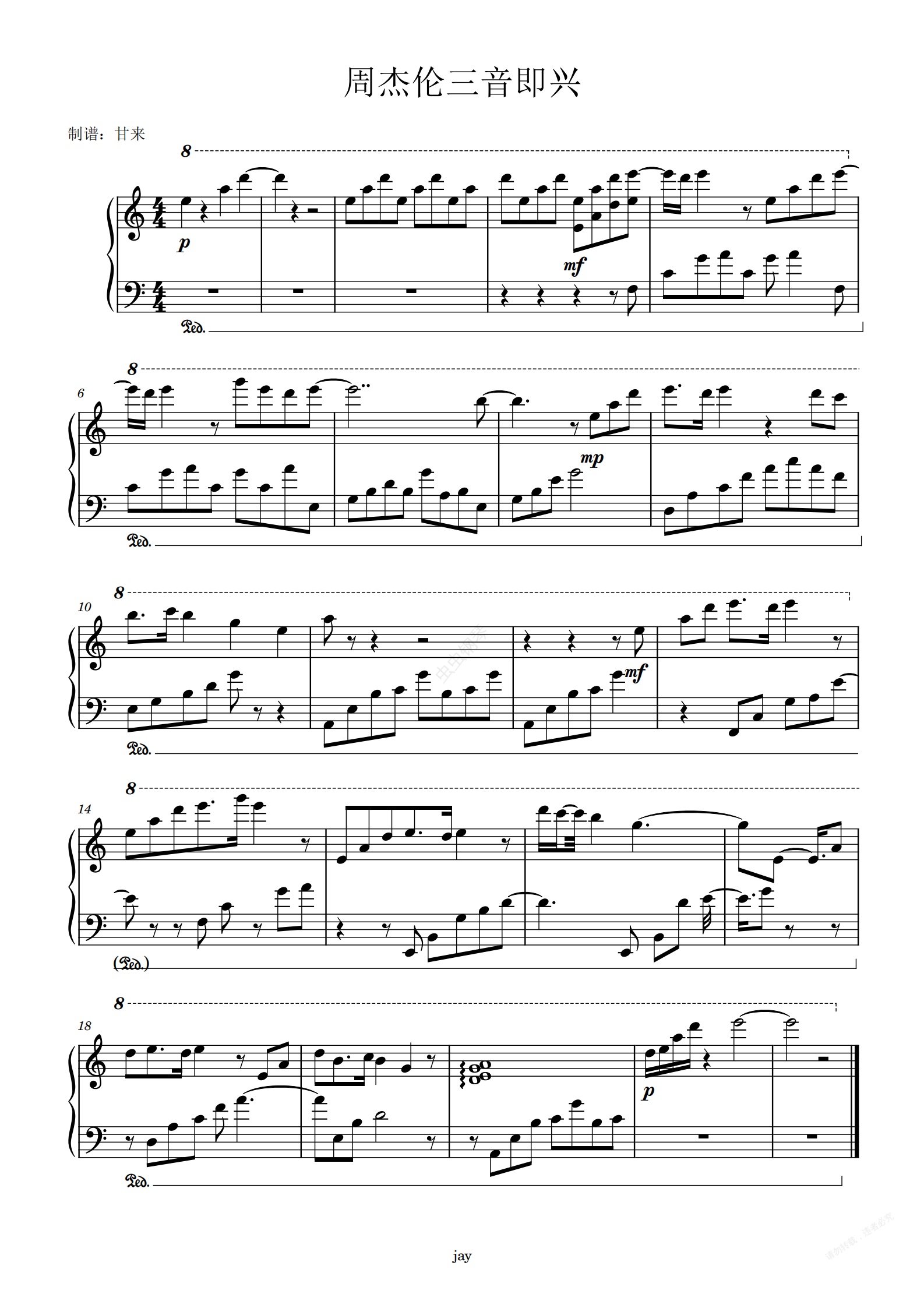 钢琴谱:快乐大本营周杰伦即兴作曲
