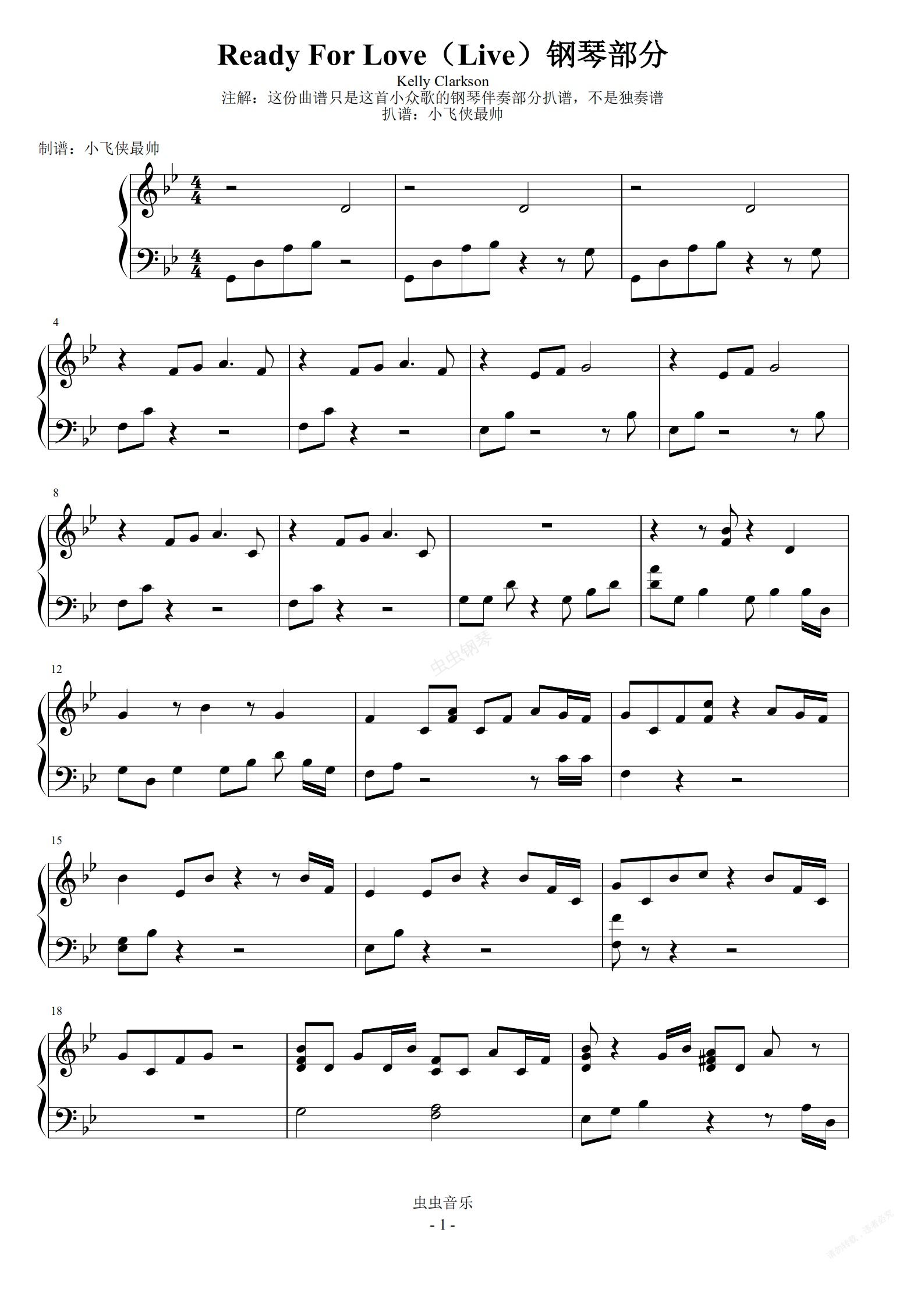 钢琴谱:Ready For Love(Live)钢琴部分(注:不是纯钢琴演奏)