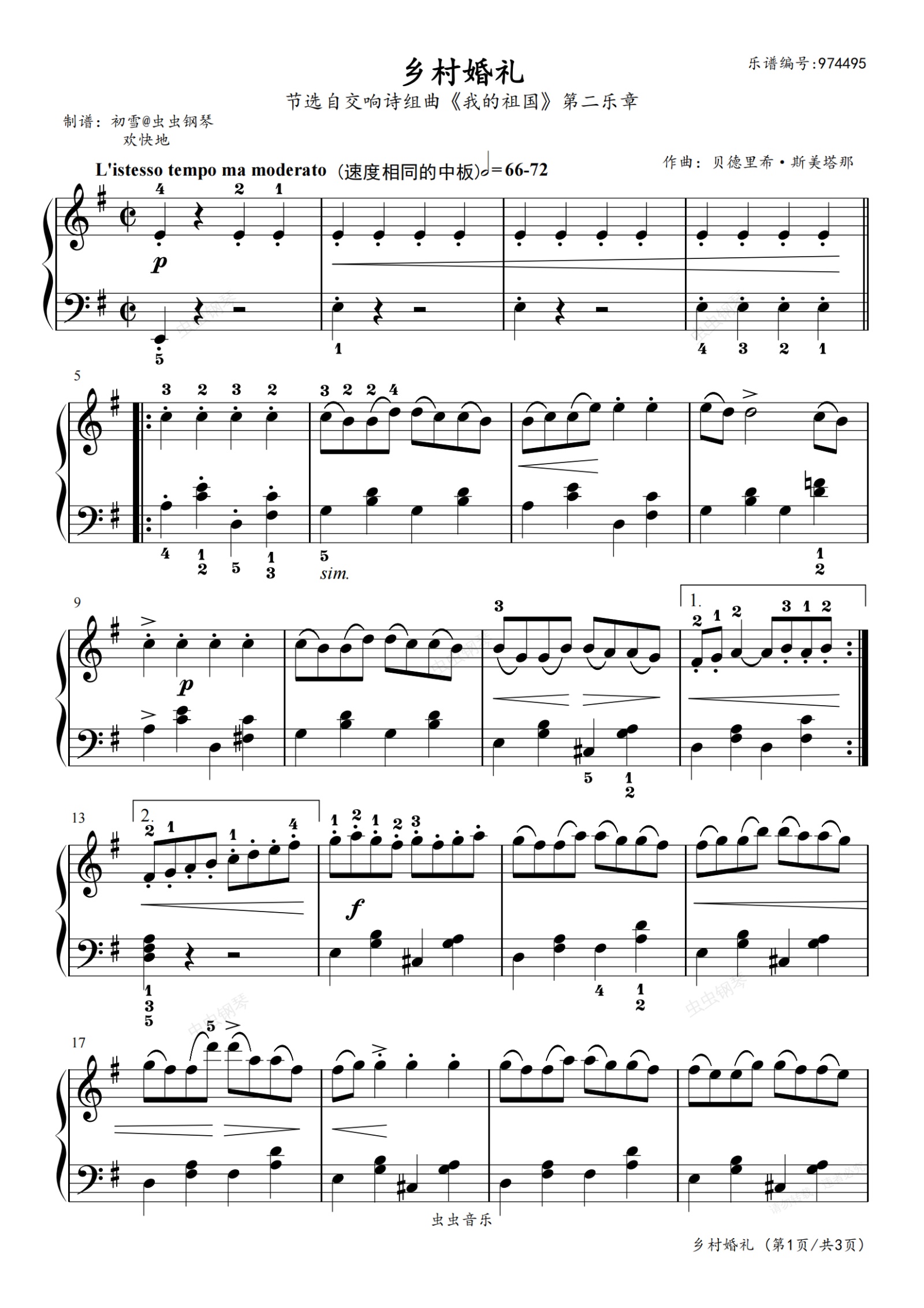 (the)------伏尔塔瓦河   贝德里希·斯美塔那(, 1824-1884),捷克著名的民族乐派作曲家。刻骨铭心的离别,诞生振聋发聩的作品,尤其是远离祖国,漂泊异乡,那种悲凉、痛楚是揪心的,那种忧郁、眷念是无以形容的。交响诗套曲《我的祖国》就是这样一部作品。全曲共6首,其中最撼人心魄的是第2首《伏尔塔瓦河》。斯美塔那通过对这条波西米亚民族的母亲河的描写,表达了他对祖国壮美山河的深深热爱和眷恋。   《伏尔塔瓦河》是斯美塔那的代表作、交响诗套曲《我的祖国》中的第二首交响诗。沃尔塔瓦河是捷克民族的摇篮,在捷克人民心中有着特殊的地位,被捷克民族称为“母亲河”。这是一首充满魅力的抒情诗般的交响音乐,也是斯美塔那所作的最为宜于人们接受的作品。1874年首次公演就受到公众的热烈欢迎。这首富有感染力的、流畅自然的e小调旋律在全曲中起着主导的统一的作用。而森林狩猎的音乐乡间婚礼的民间波尔卡与主题音乐有机的结合。乐曲最后转为E大调,显示了沃尔塔瓦河流向布拉格的更加壮阔于气势雄伟。
