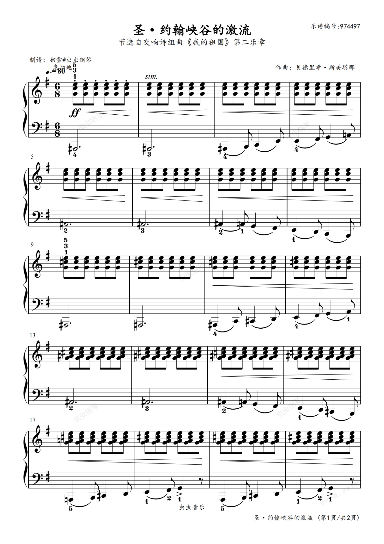 《伏尔塔瓦河》是斯美塔那的代表作、交响诗套曲《我的祖国》中的第二首交响诗。沃尔塔瓦河是捷克民族的摇篮,在捷克人民心中有着特殊的地位,被捷克民族称为“母亲河”。这是一首充满魅力的抒情诗般的交响音乐,也是斯美塔那所作的最为宜于人们接受的作品。1874年首次公演就受到公众的热烈欢迎。这首富有感染力的、流畅自然的e小调旋律在全曲中起着主导的统一的作用。而森林狩猎的音乐乡间婚礼的民间波尔卡与主题音乐有机的结合。乐曲最后转为E大调,显示了沃尔塔瓦河流向布拉格的更加壮阔于气势雄伟。