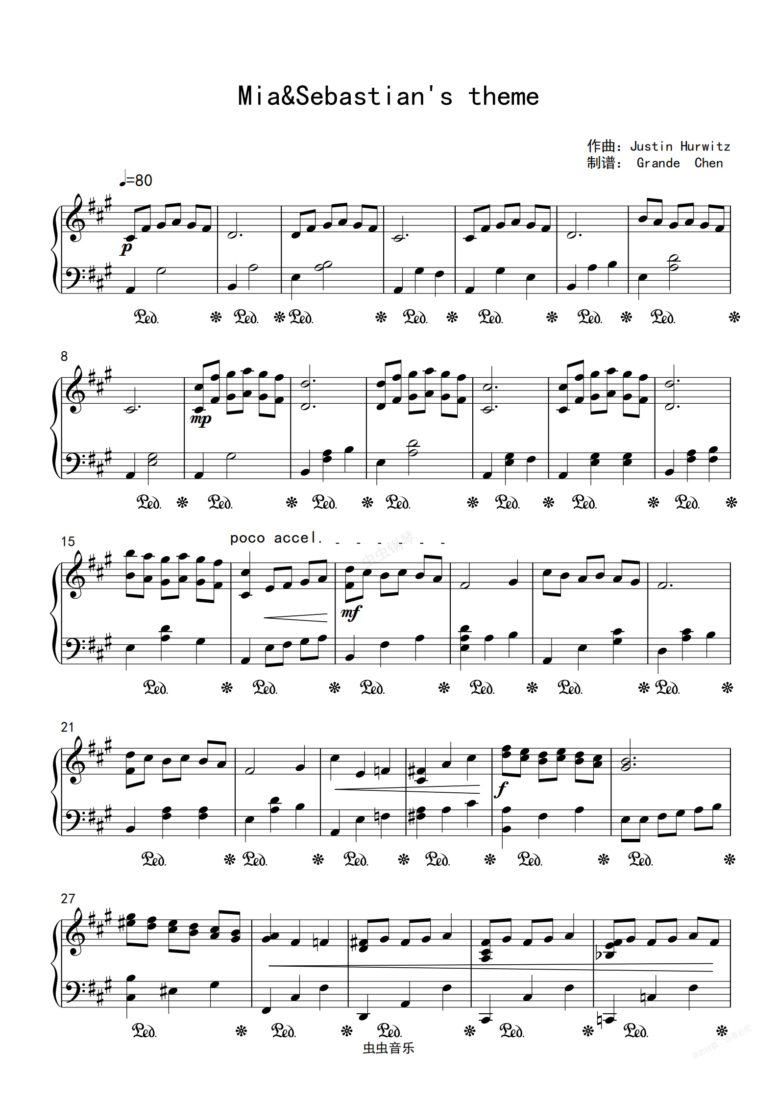 钢琴谱:Mia&Sebastian's theme原版效果独奏谱