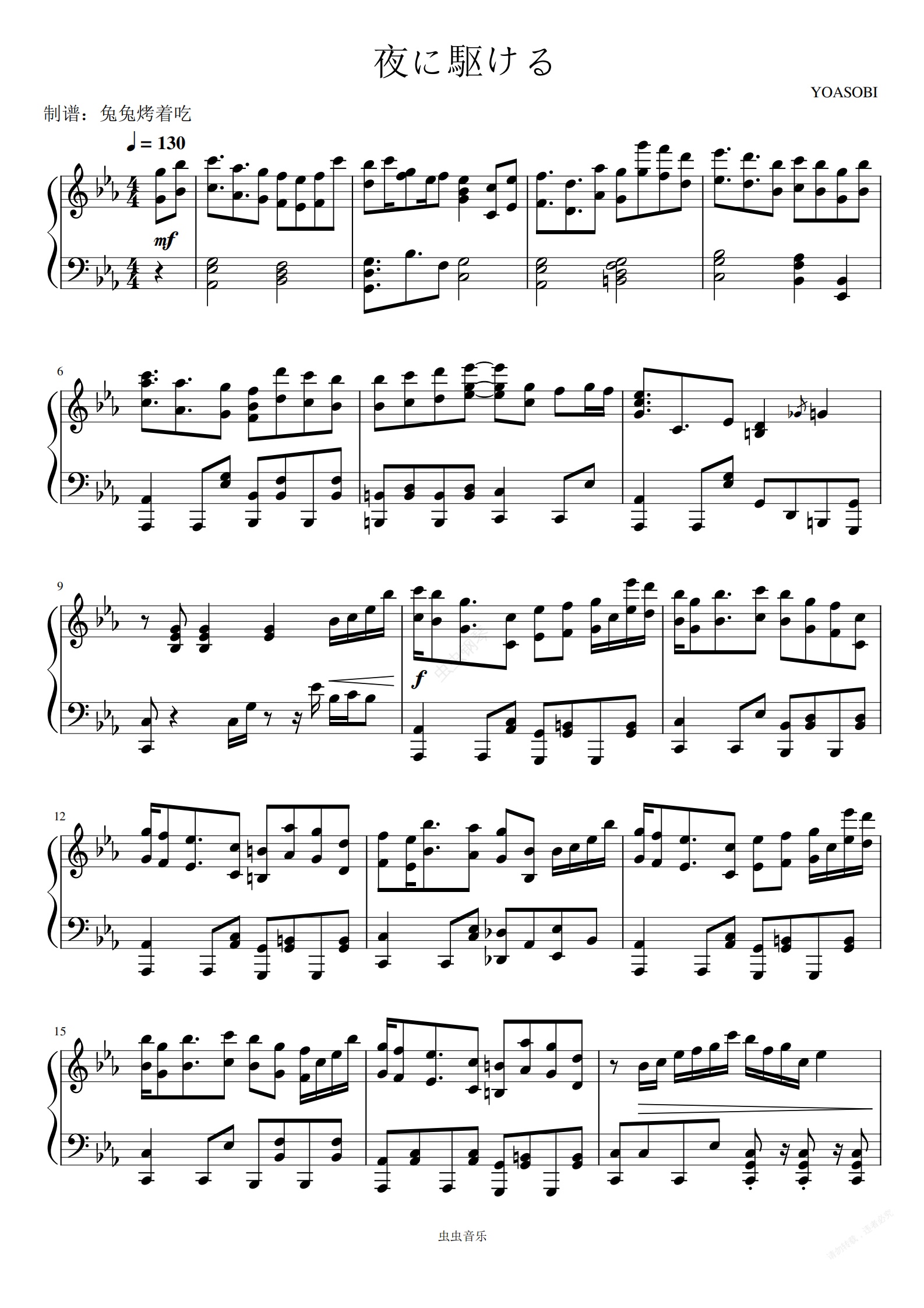 钢琴谱:《夜に駆ける》(向夜晚飞奔)完美版
