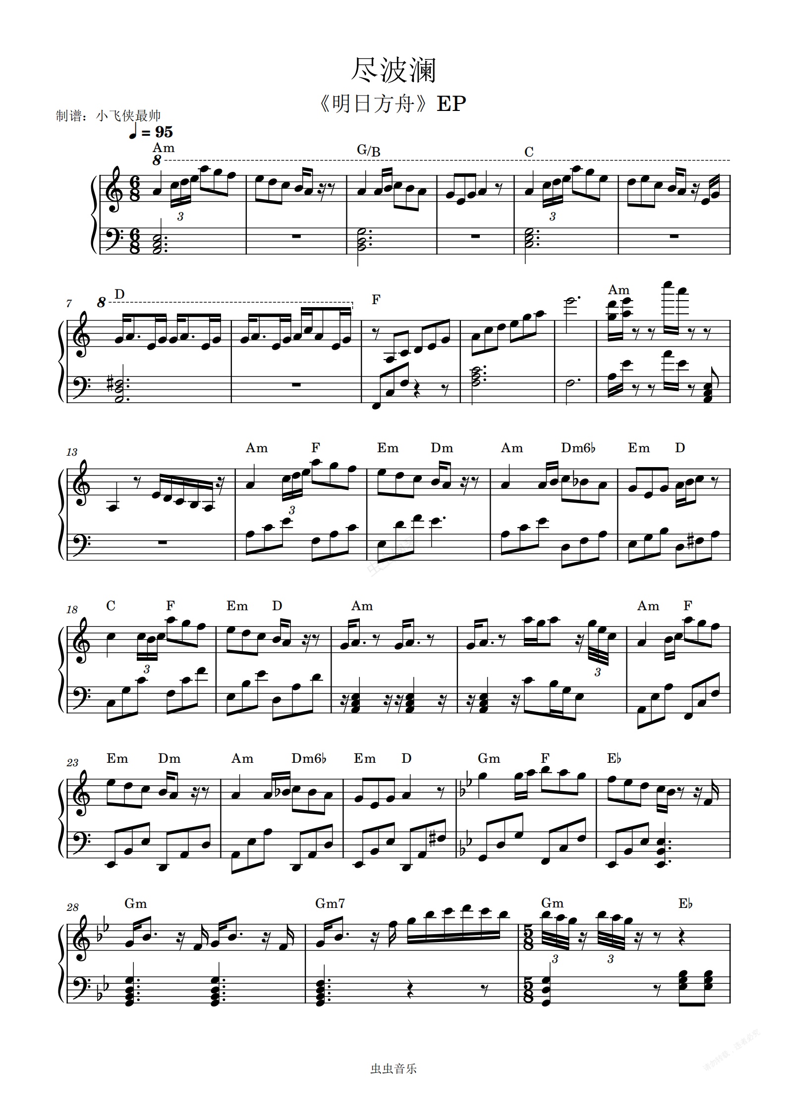 钢琴谱:尽波澜 《明日方舟》EP