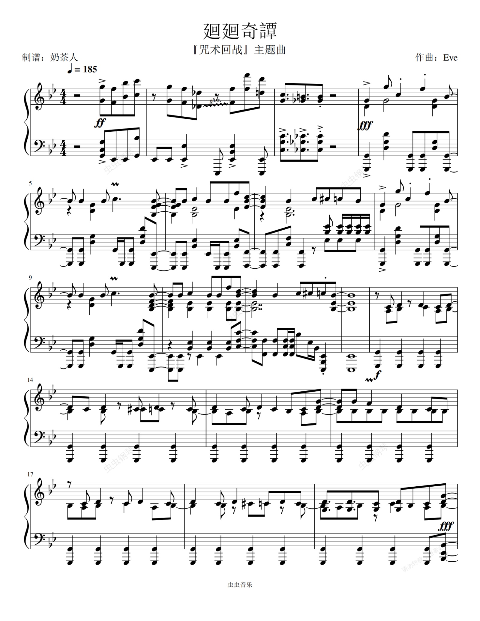 钢琴谱:《廻廻奇譚》 咒术回战主题曲 极限困难版
