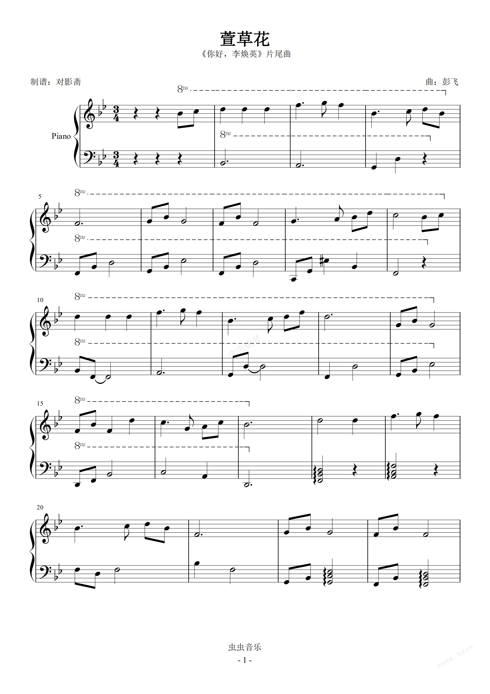 钢琴谱:萱草花(《你好,李焕英》片尾曲)