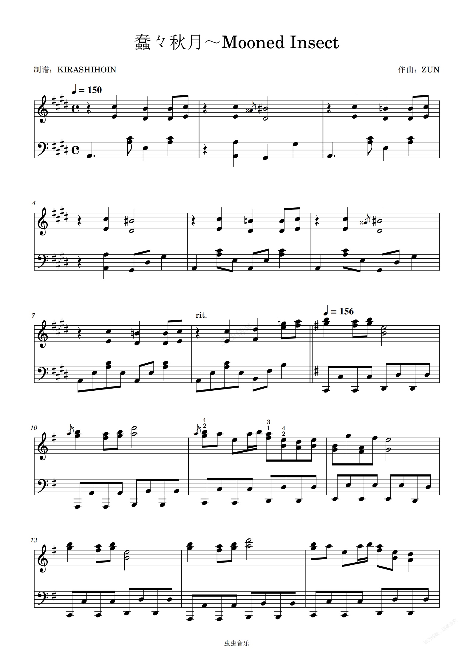 钢琴谱:蠢々秋月~Mooned Insect(《東方永夜抄 ~ Imperishable Night.》节选曲)