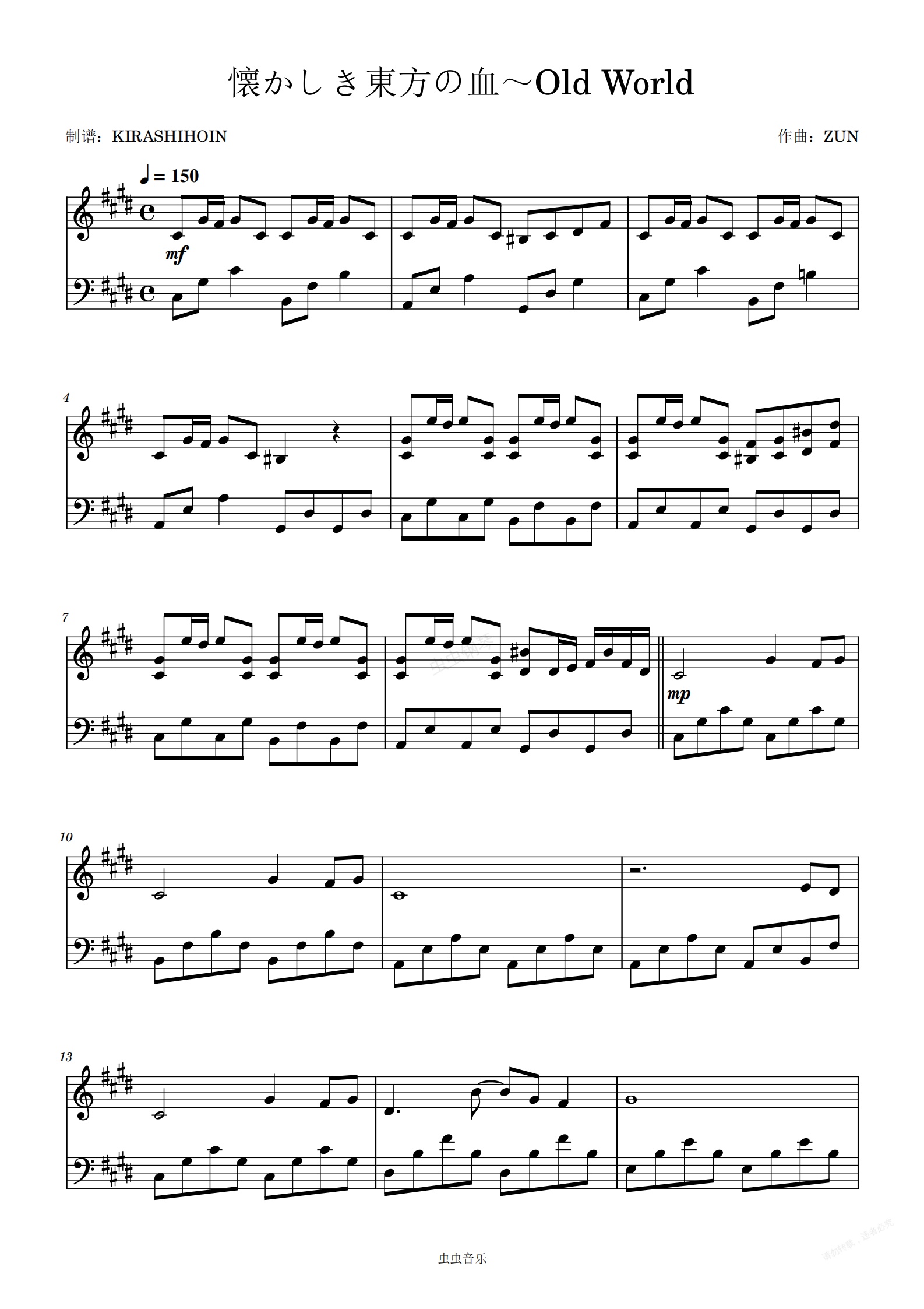 钢琴谱:懐かしき東方の血~Old World(《東方永夜抄 ~ Imperishable Night. 》节选曲)