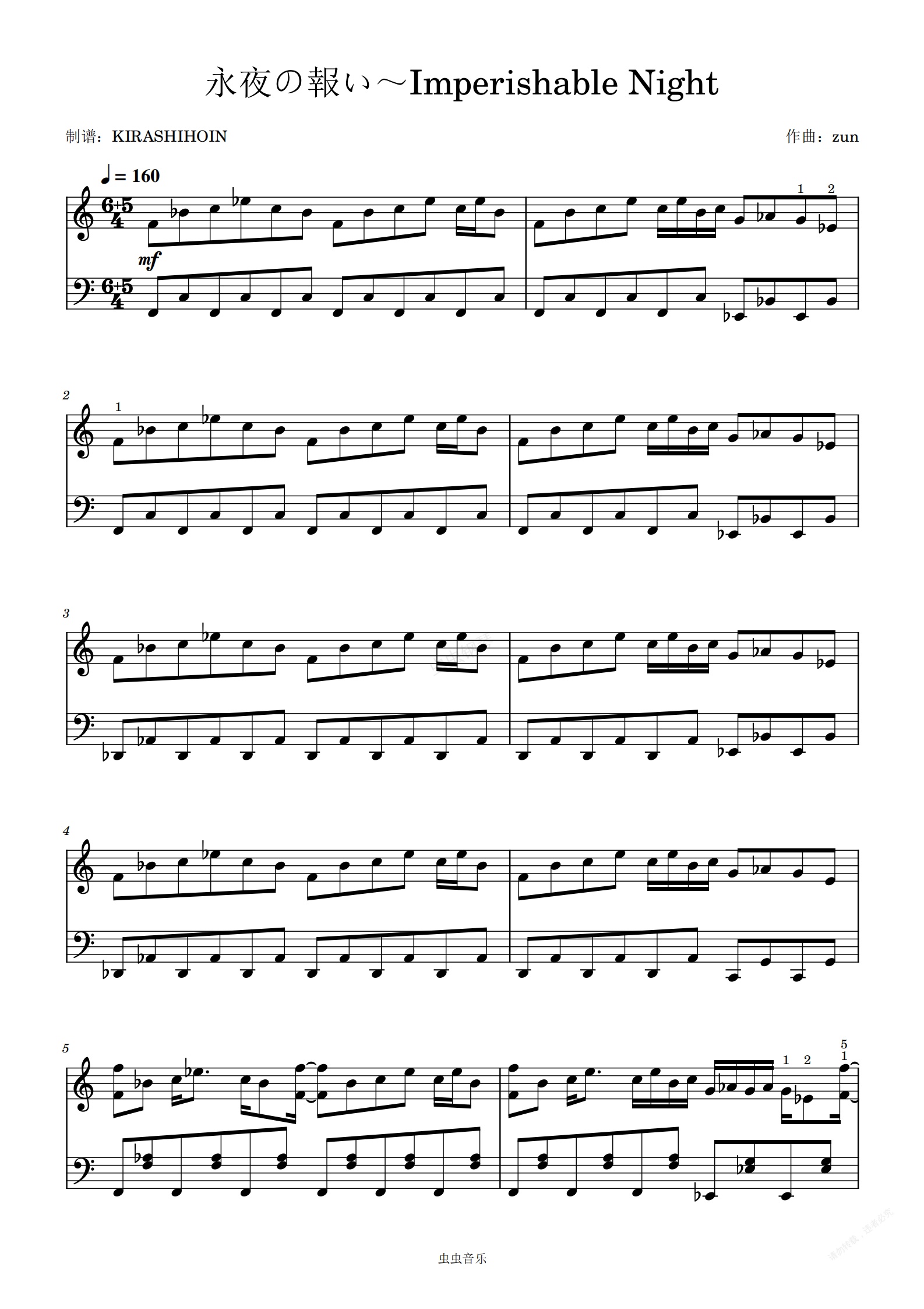 钢琴谱:永夜の報い~Imperishable Night(《東方永夜抄 ~ Imperishable Night. 》节选曲)