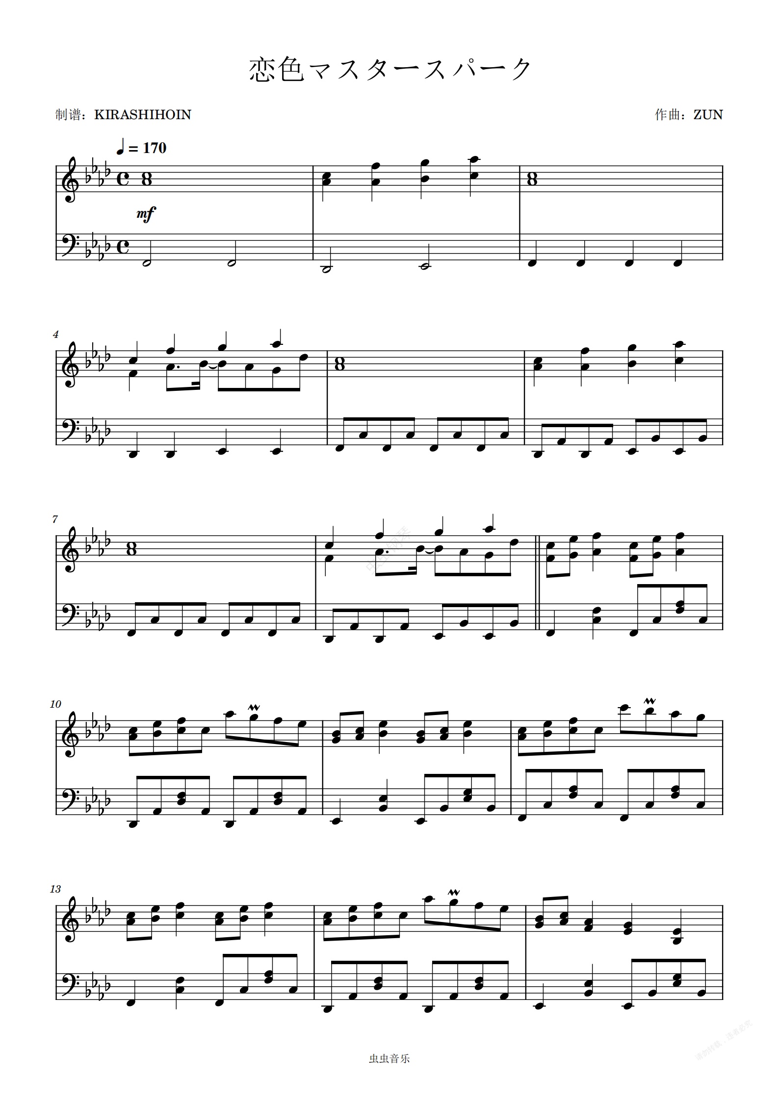 钢琴谱:恋色マスタースパーク(《東方永夜抄 ~ Imperishable Night. 》节选曲)