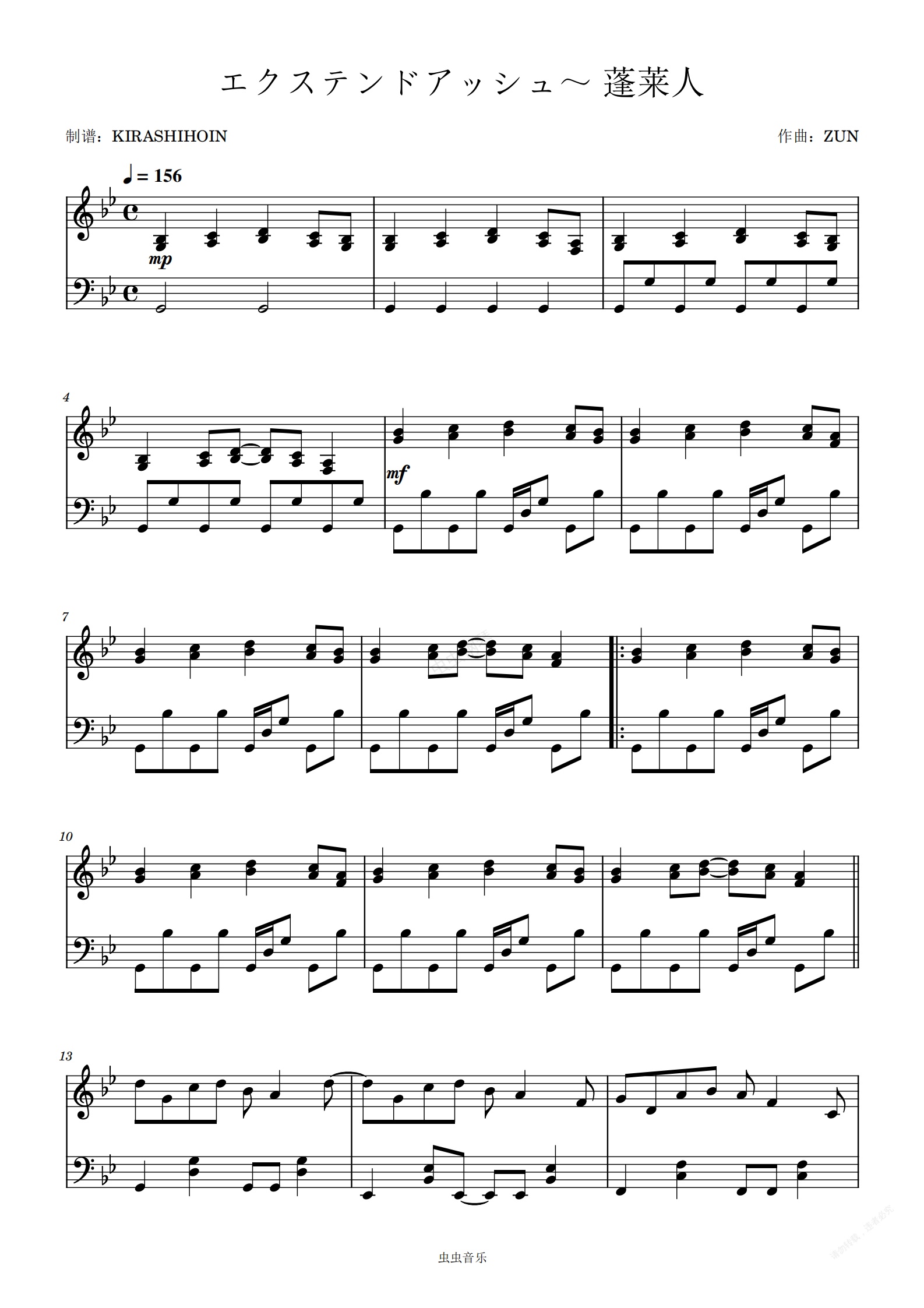 钢琴谱:エクステンドアッシュ~ 蓬莱人(《東方永夜抄 ~ Imperishable Night. 》节选曲)