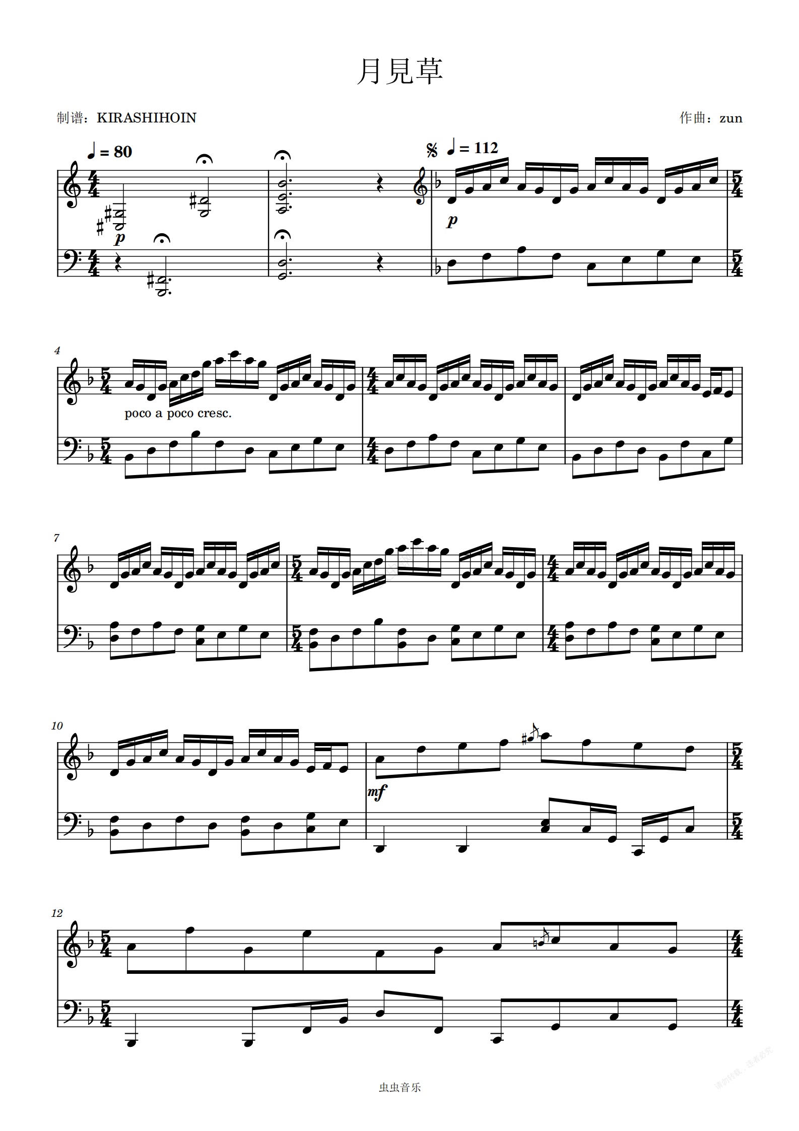 钢琴谱:月見草(《東方永夜抄 ~ Imperishable Night. 》节选曲)