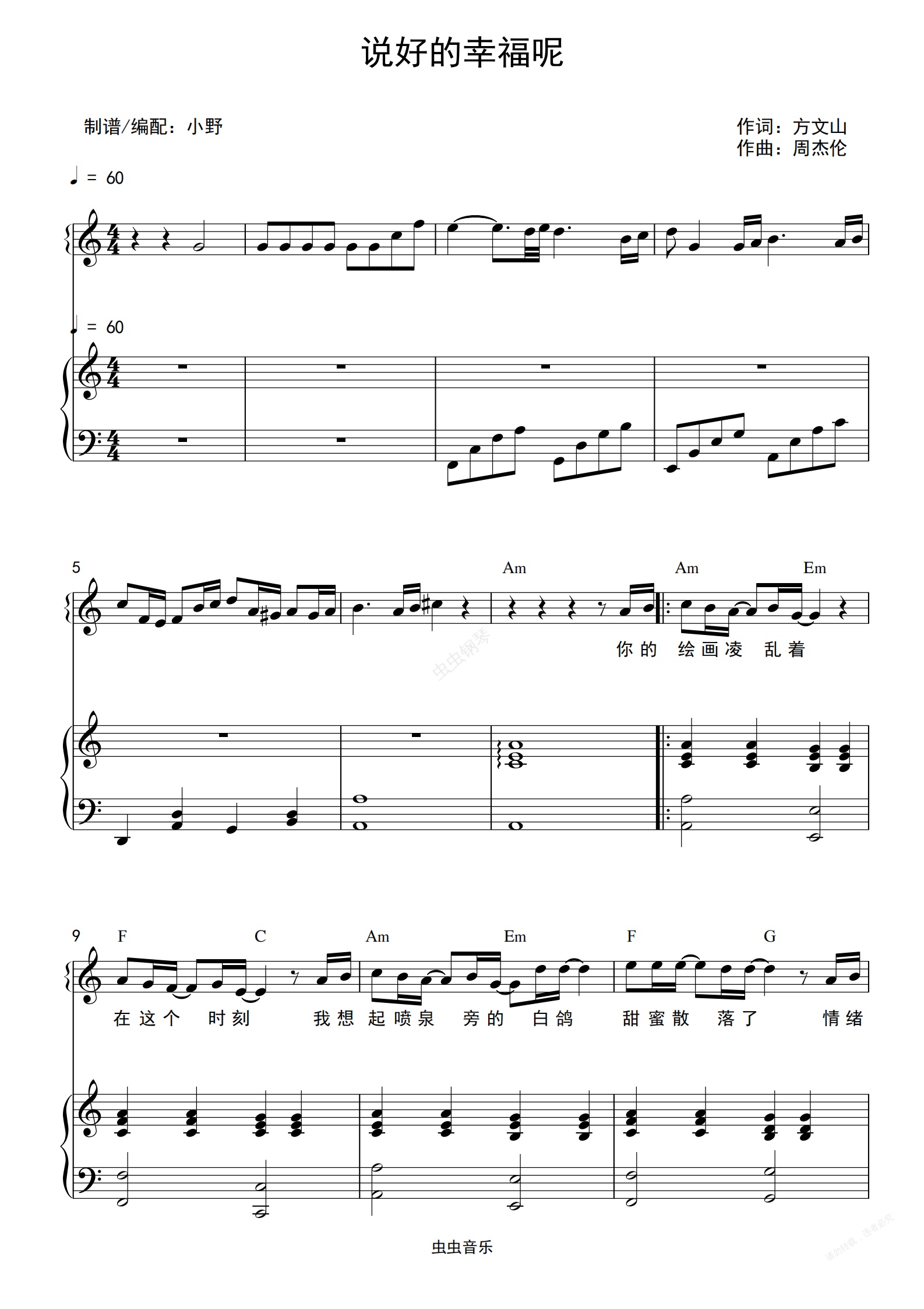钢琴谱:说好的幸福呢(和弦弹唱版)
