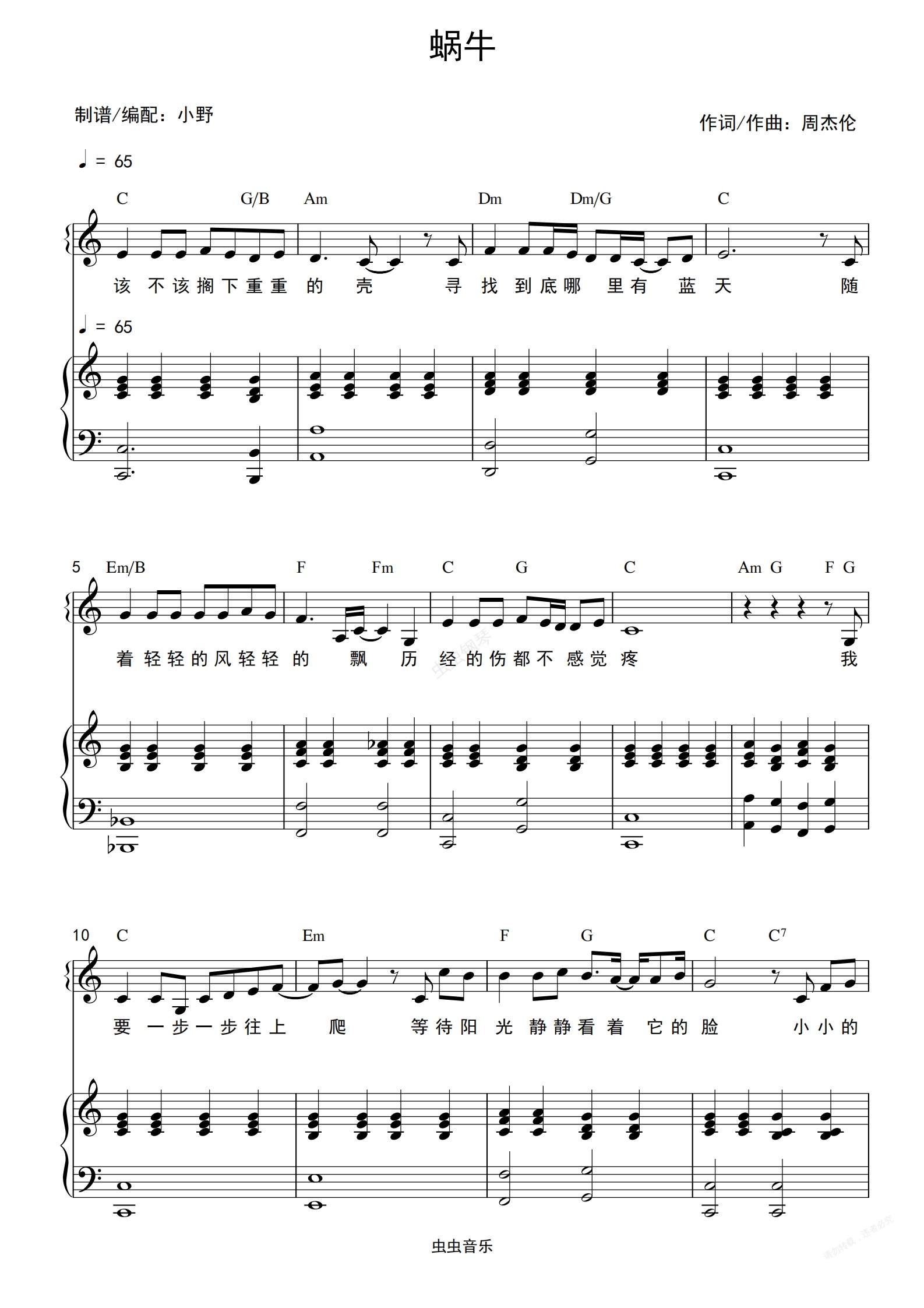 钢琴谱:蜗牛(和弦弹唱版)