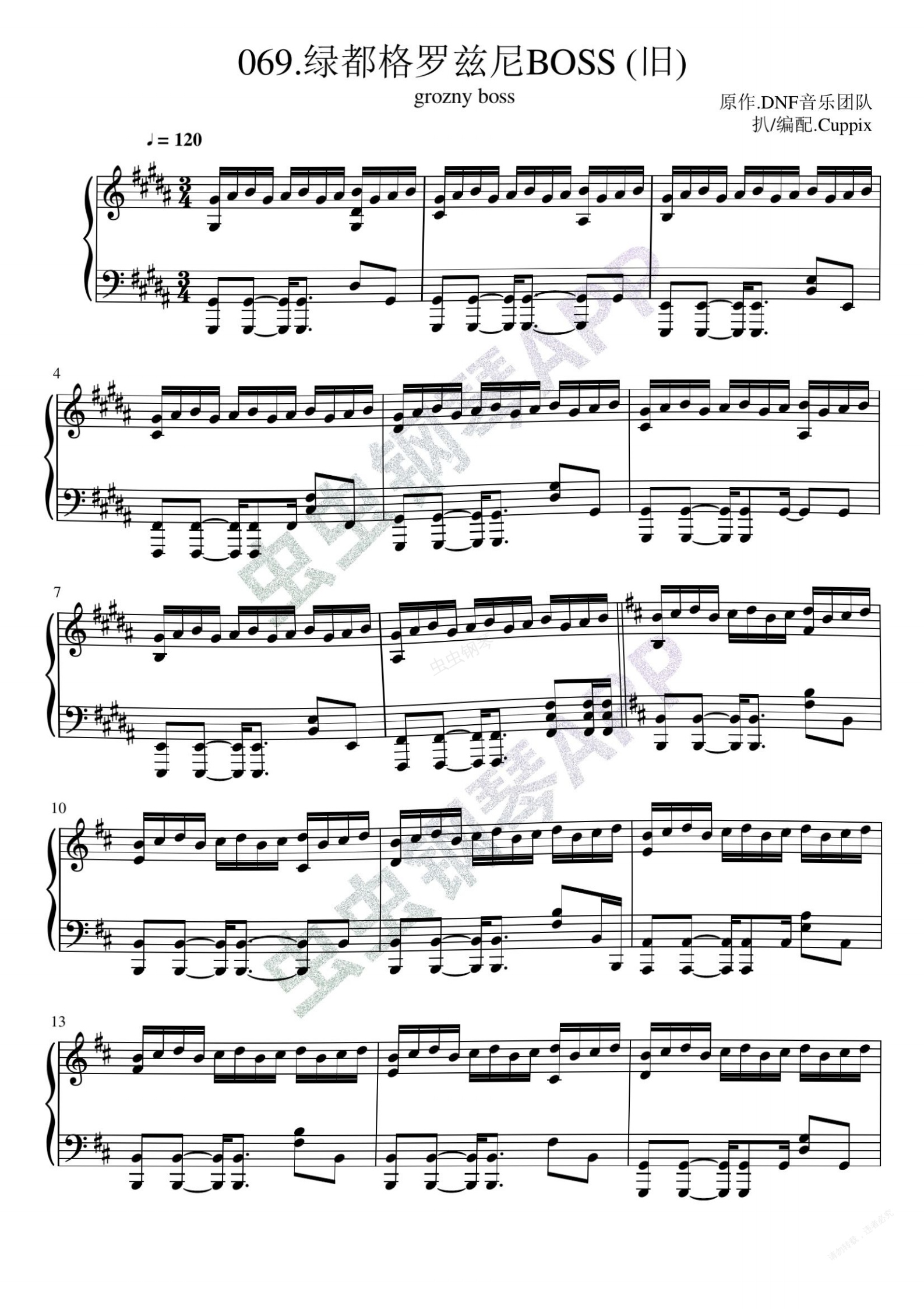 钢琴谱:DNF - 绿都格罗兹尼BOSS (旧):魔雷者麦瑟·莫纳亨 - grozny boss