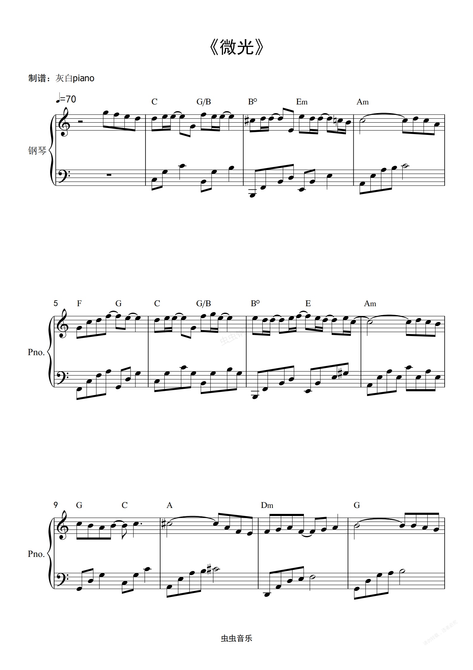钢琴谱:微光-灰白 即兴伴奏练习曲
