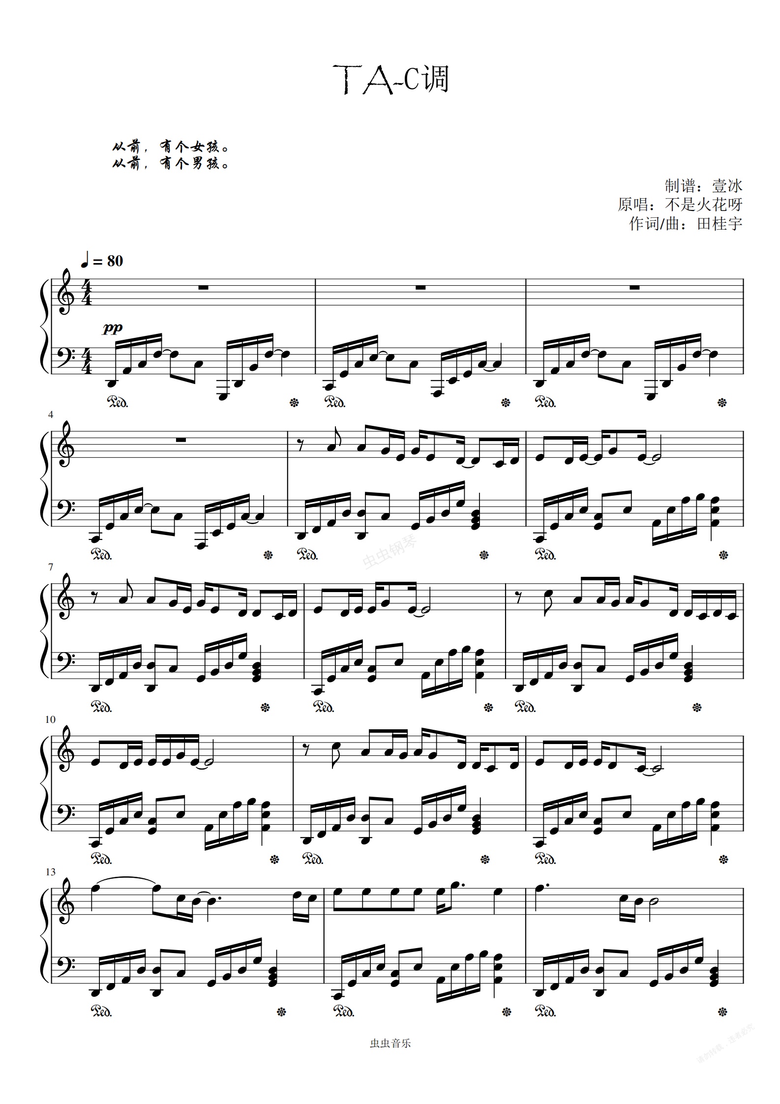 钢琴谱:TA//不是花火呀-C调简单易上手