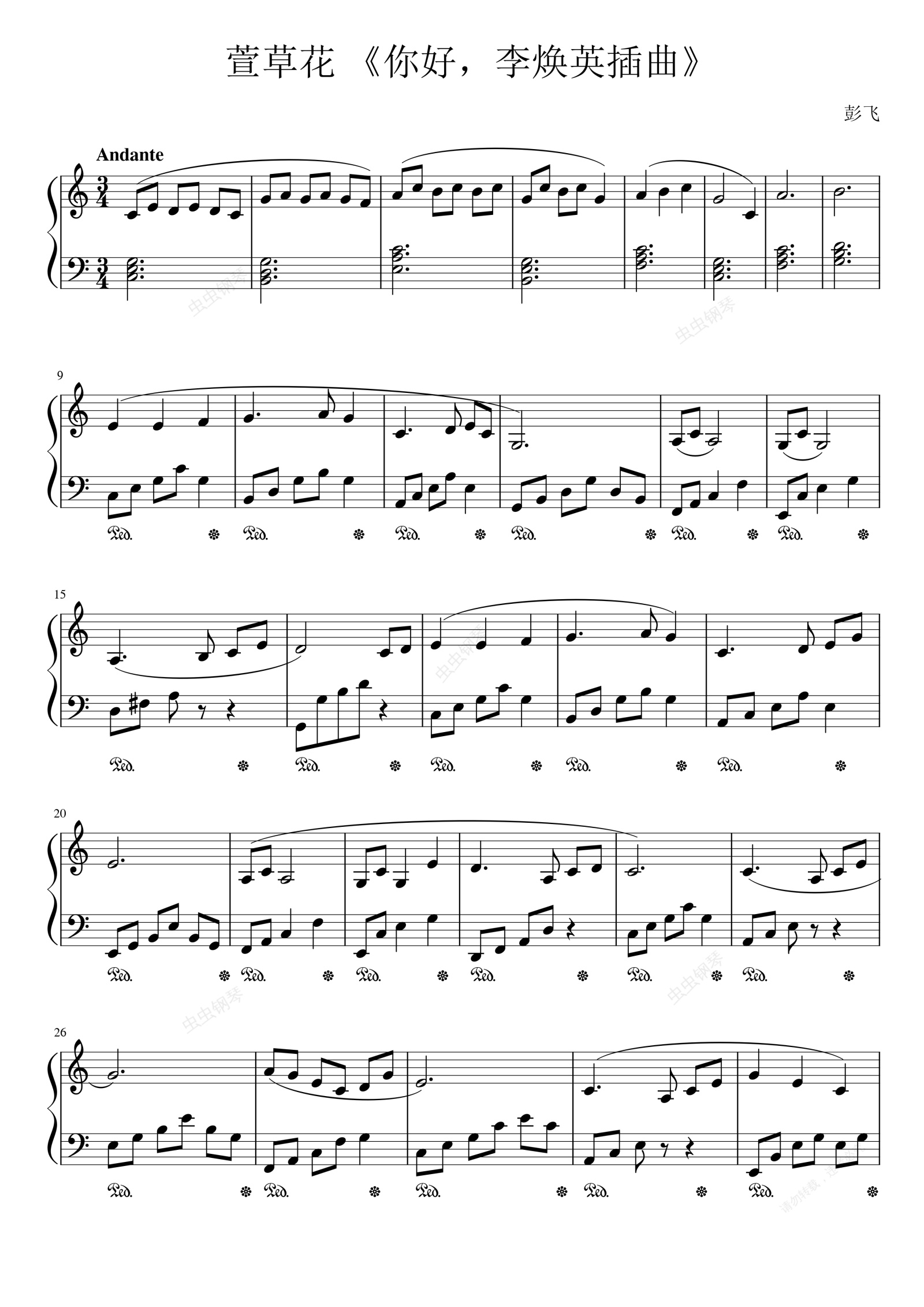钢琴谱:萱草花C大调精简版《你好,李焕英》的主题曲