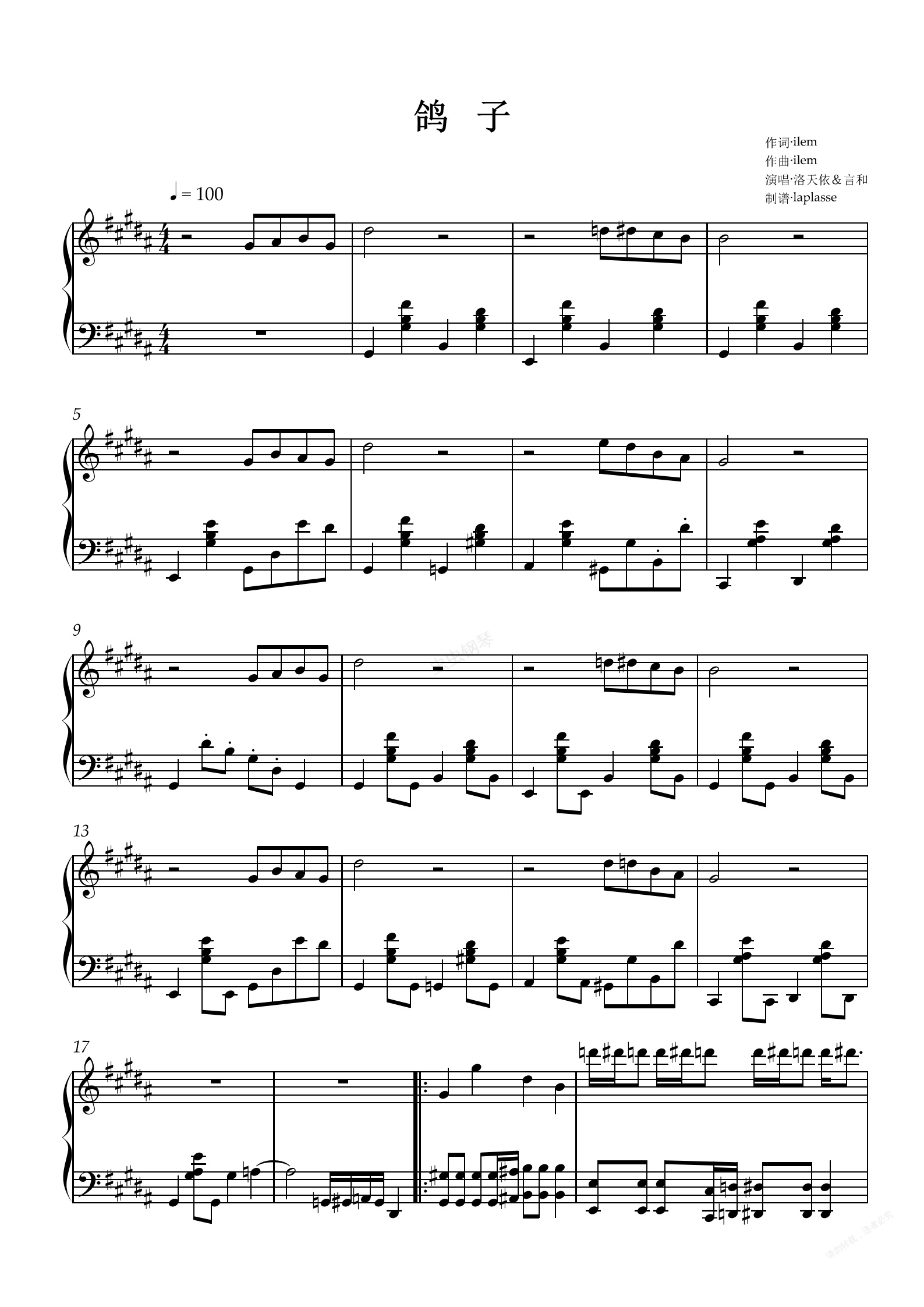 查看完整曲谱