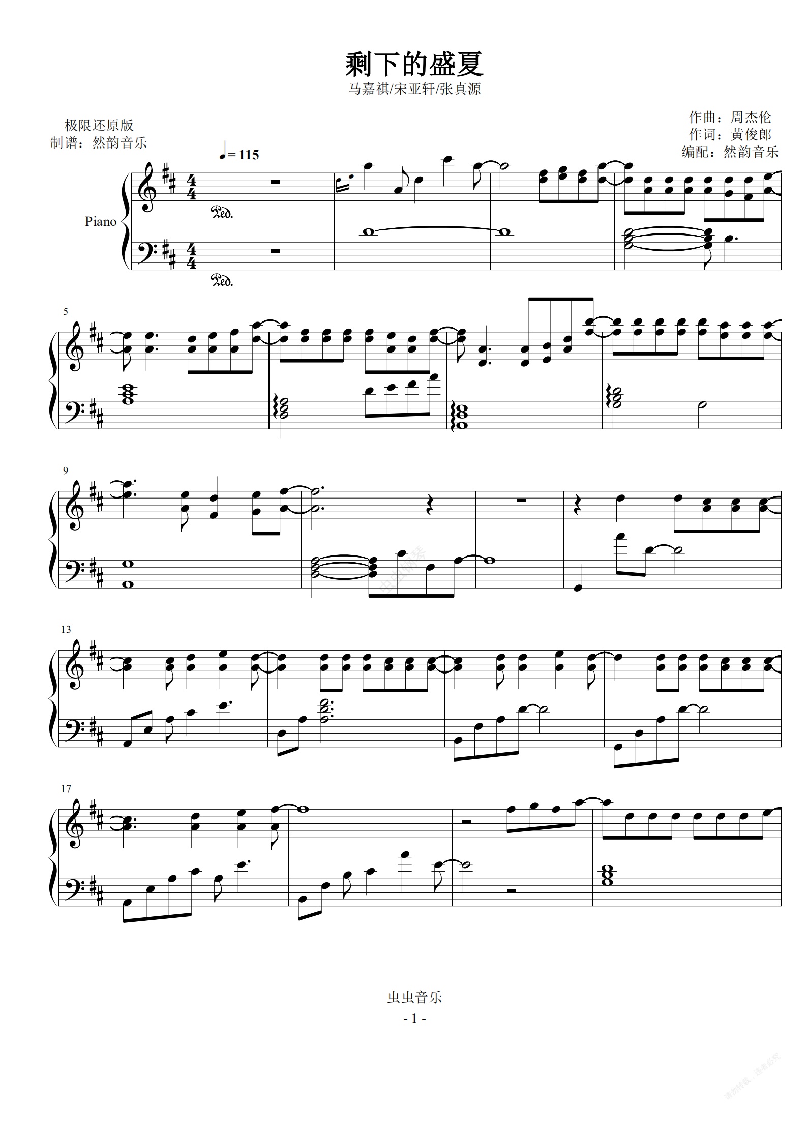钢琴谱:剩下的盛夏-马嘉祺/宋亚轩/张真源 钢琴唯美还原 TNT时代少年团公演