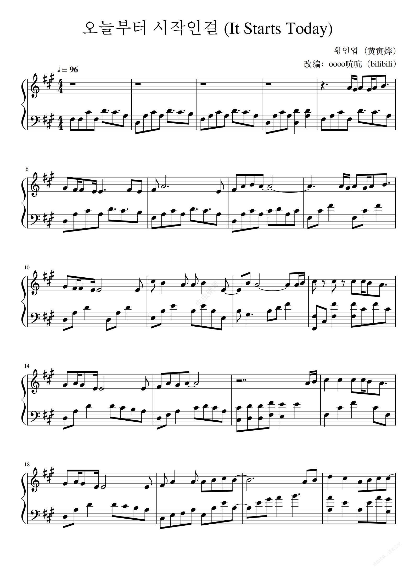 钢琴谱: 女神降临OST-오늘부터 시작인걸 (It Starts Today)