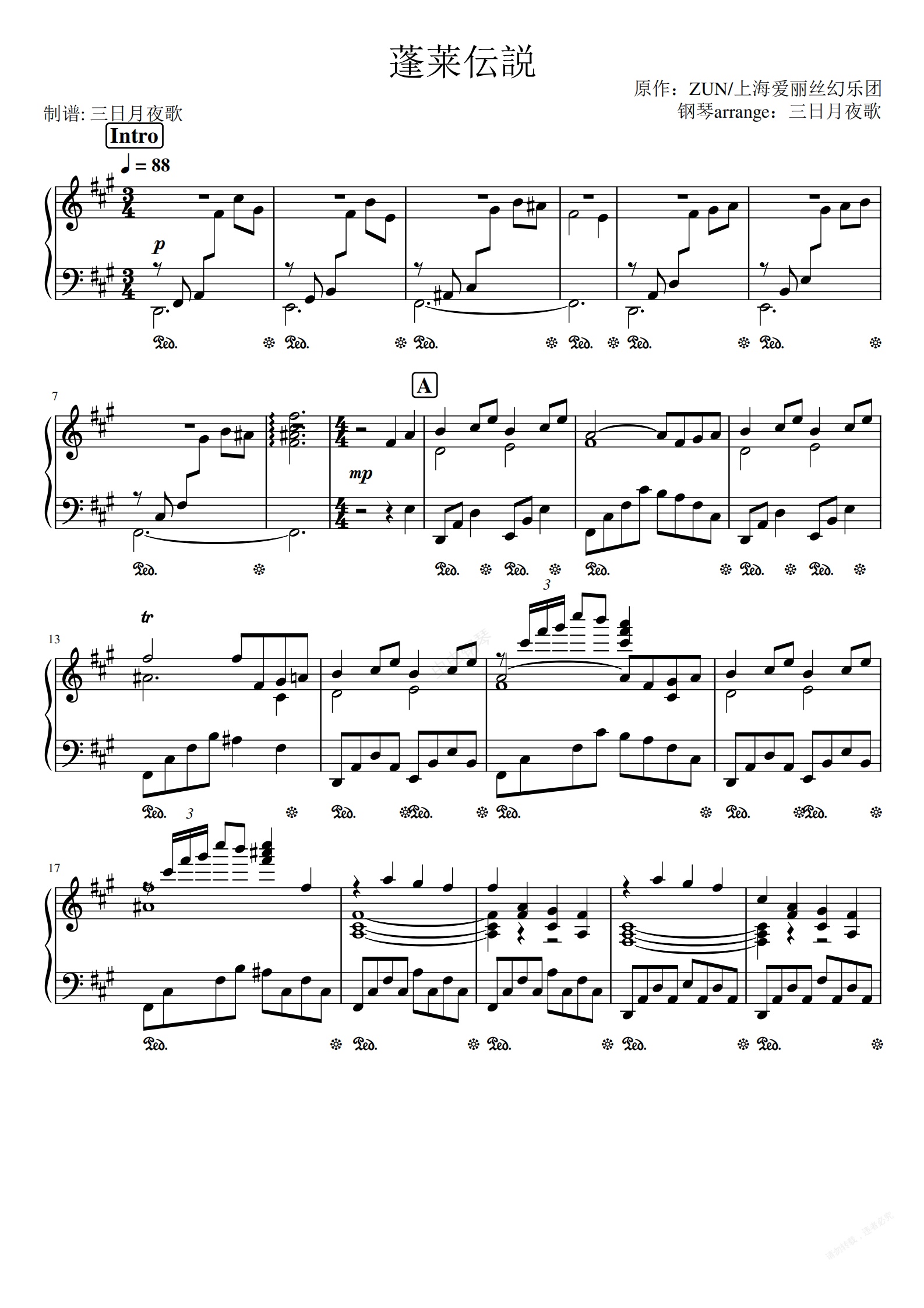 钢琴谱:【钢琴arrange】蓬莱传说