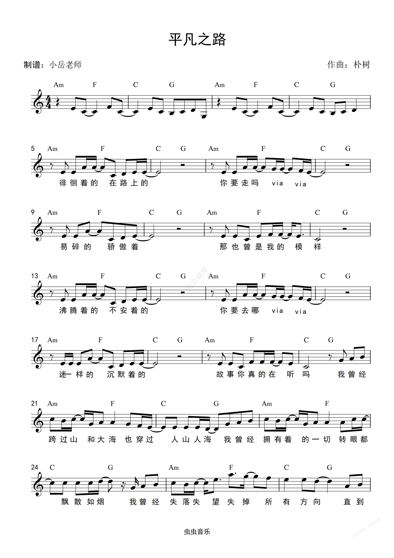 钢琴谱:平凡之路 和弦谱