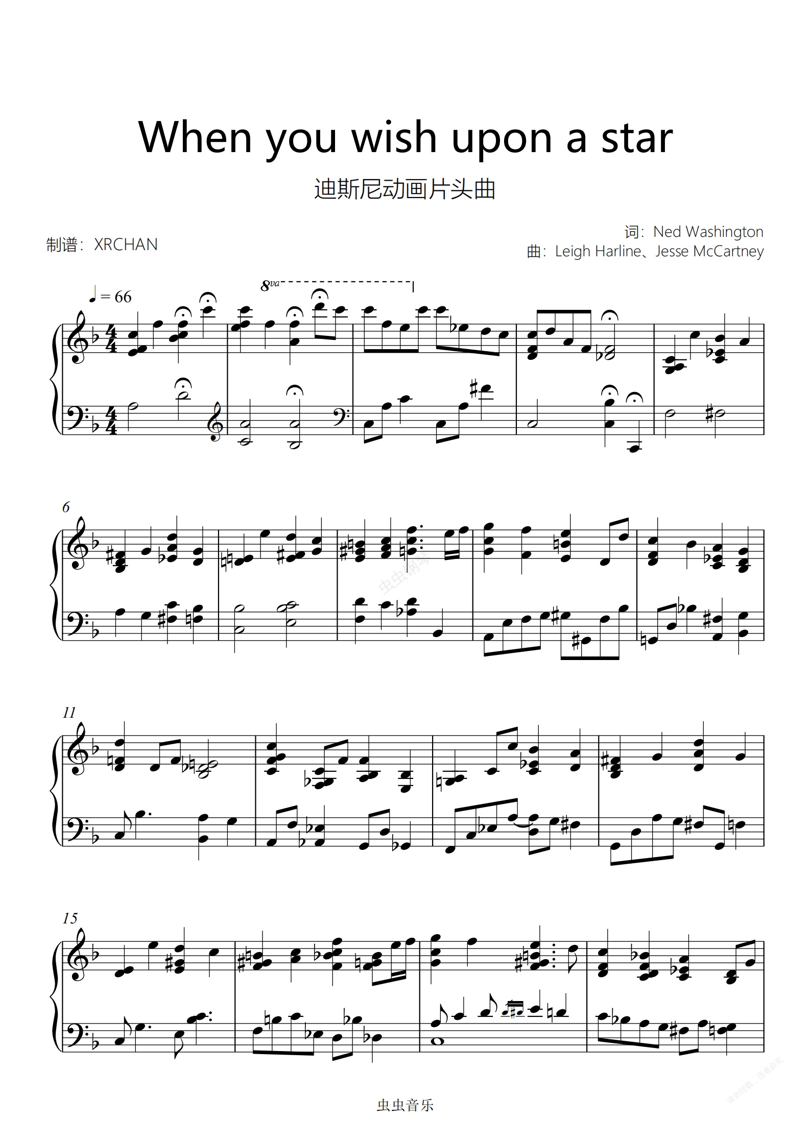 钢琴谱:When you wish upon a star 迪士尼开场曲 爵士版