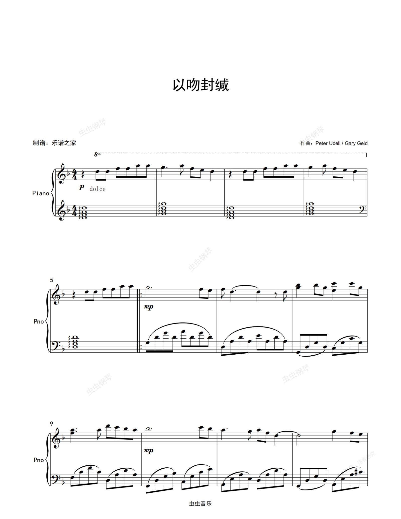 钢琴谱:《以吻封缄》经典英文歌曲 独奏钢琴曲,极具浪漫色彩的爱情歌曲