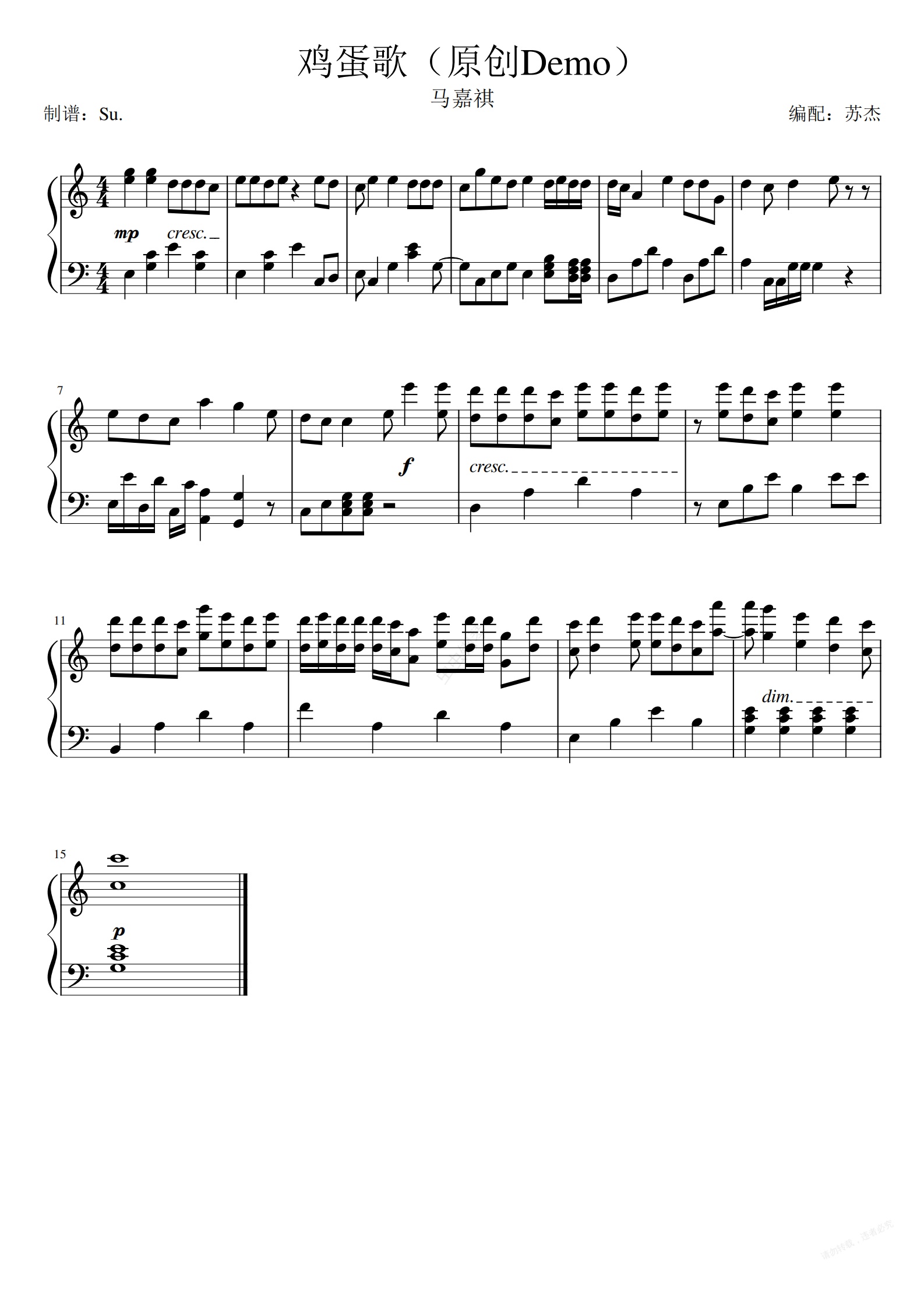 钢琴谱:鸡蛋歌(原创Demo)钢琴版