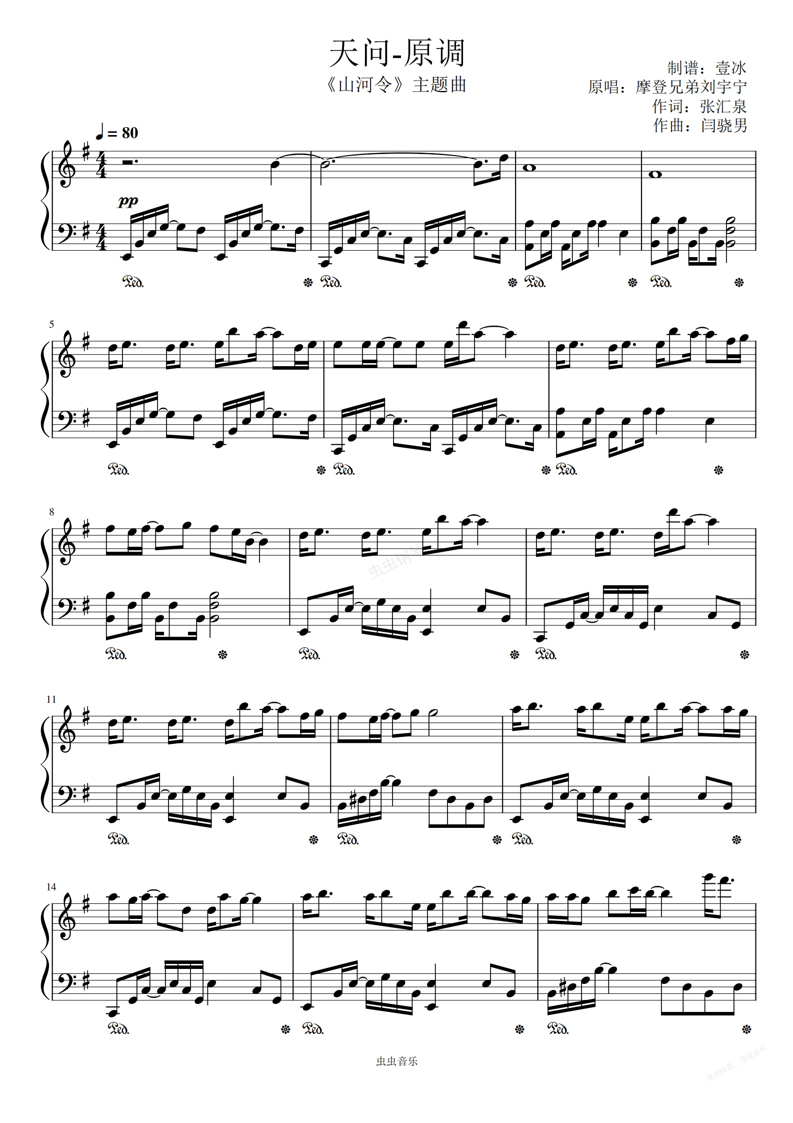 钢琴谱:天问//《山河令》主题曲刘宇宁-原调版