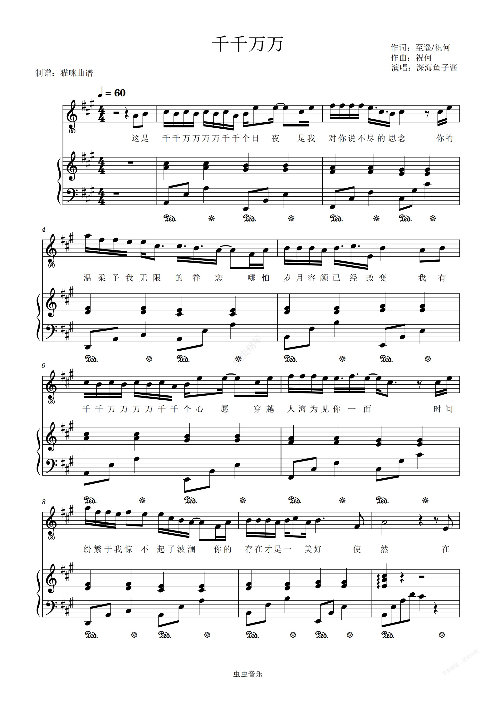 钢琴谱:《千千万万》弹唱版-深海鱼子酱