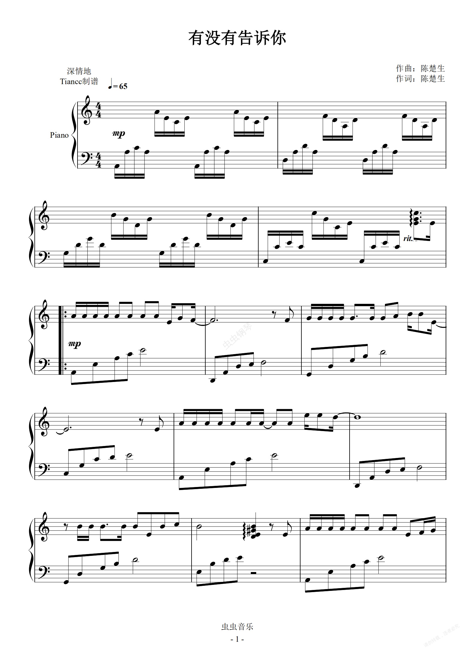 钢琴谱:《有没有告诉你》还是钢琴独奏好听,乐器之王~849难度