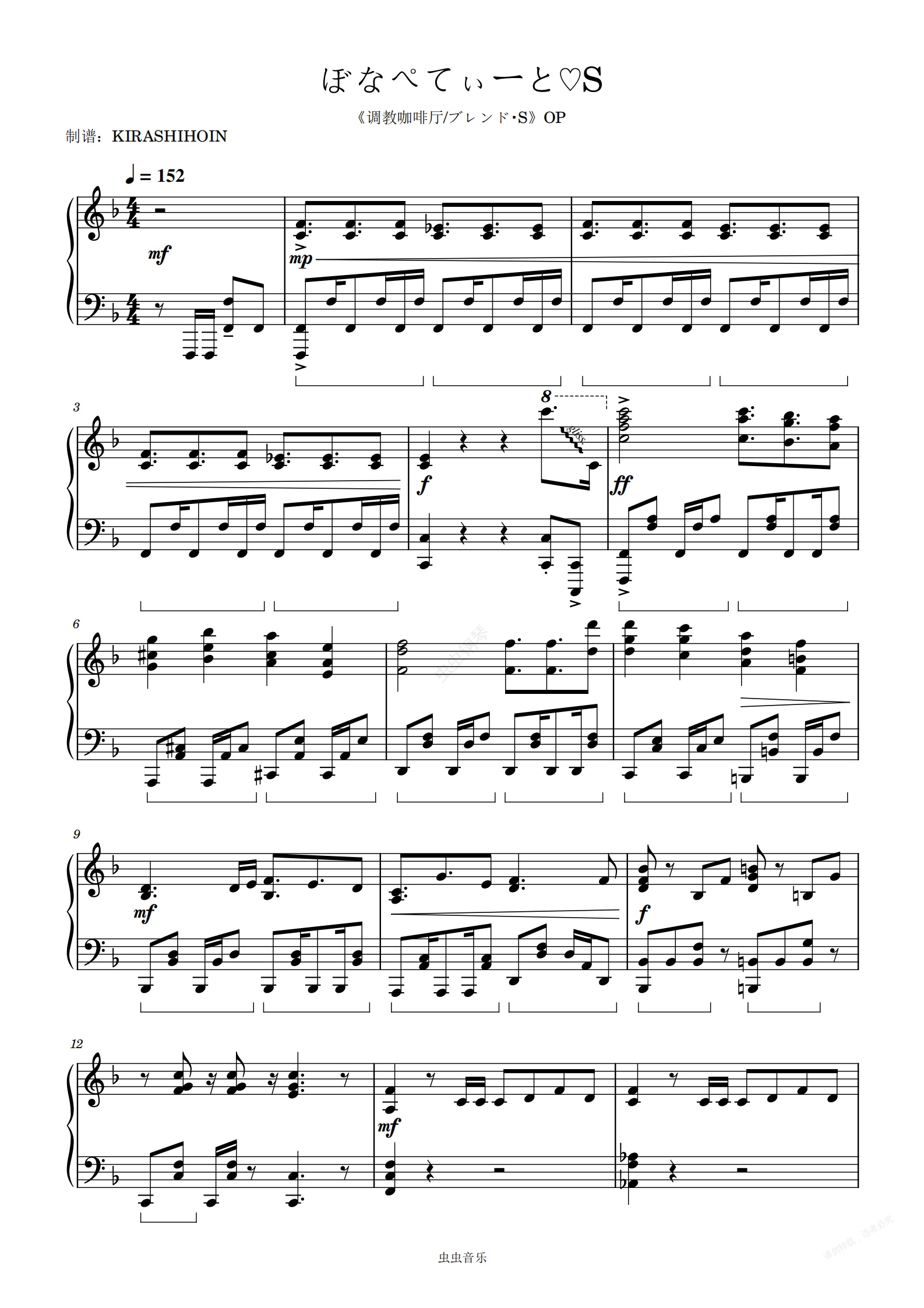 钢琴谱:ぼなぺてぃーと♡S(《调教咖啡厅/ブレンド・S》OP)