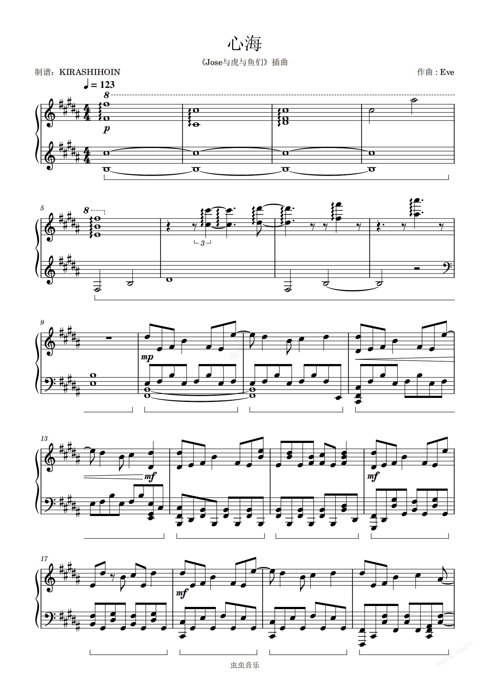 钢琴谱:心海(《Jose与虎与鱼们》插曲)