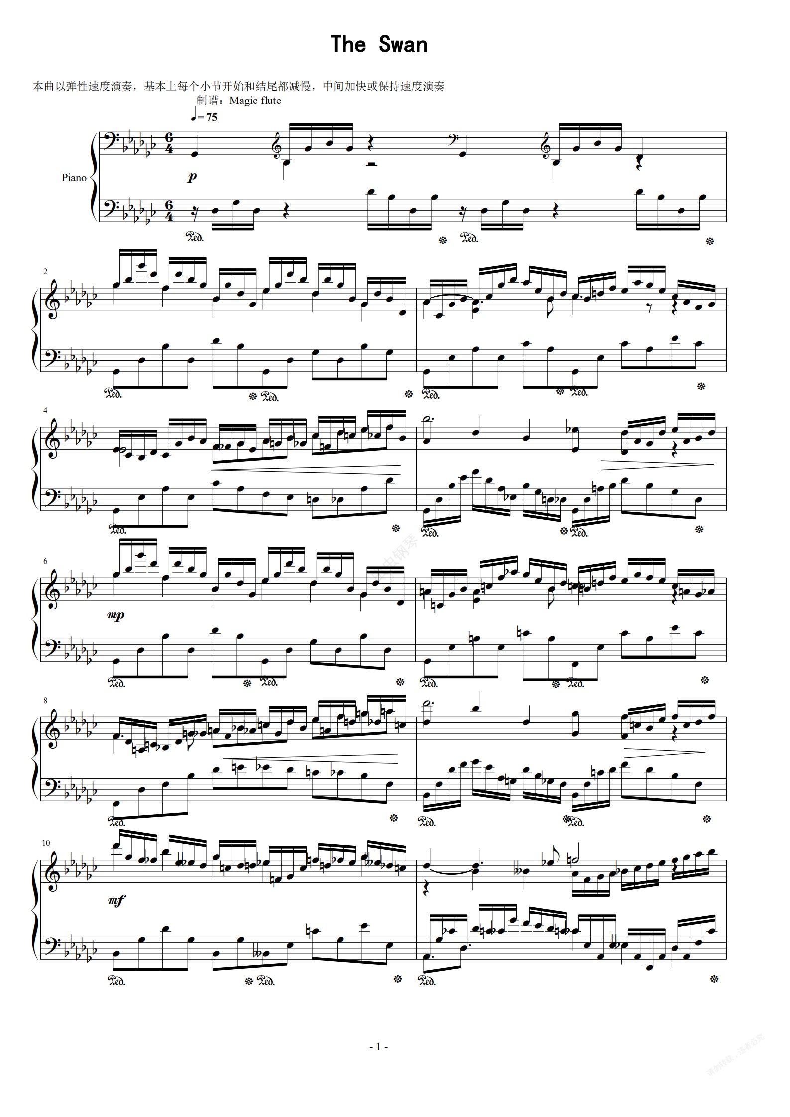 钢琴谱:天鹅Swan(不能说的秘密)-圣桑-戈多夫斯基-周杰伦