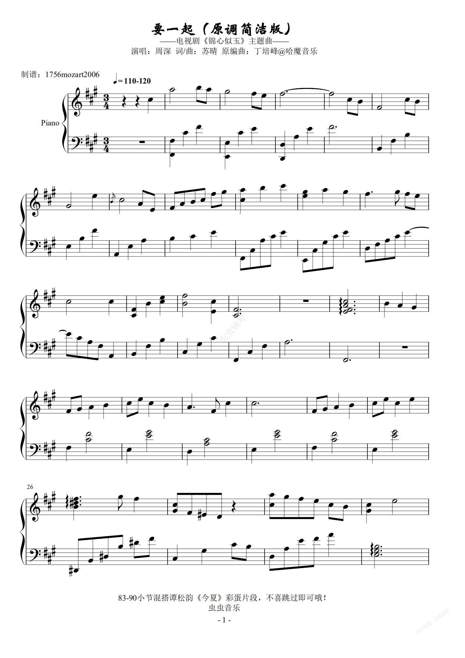 钢琴谱:要一起-周深(原调简洁版)