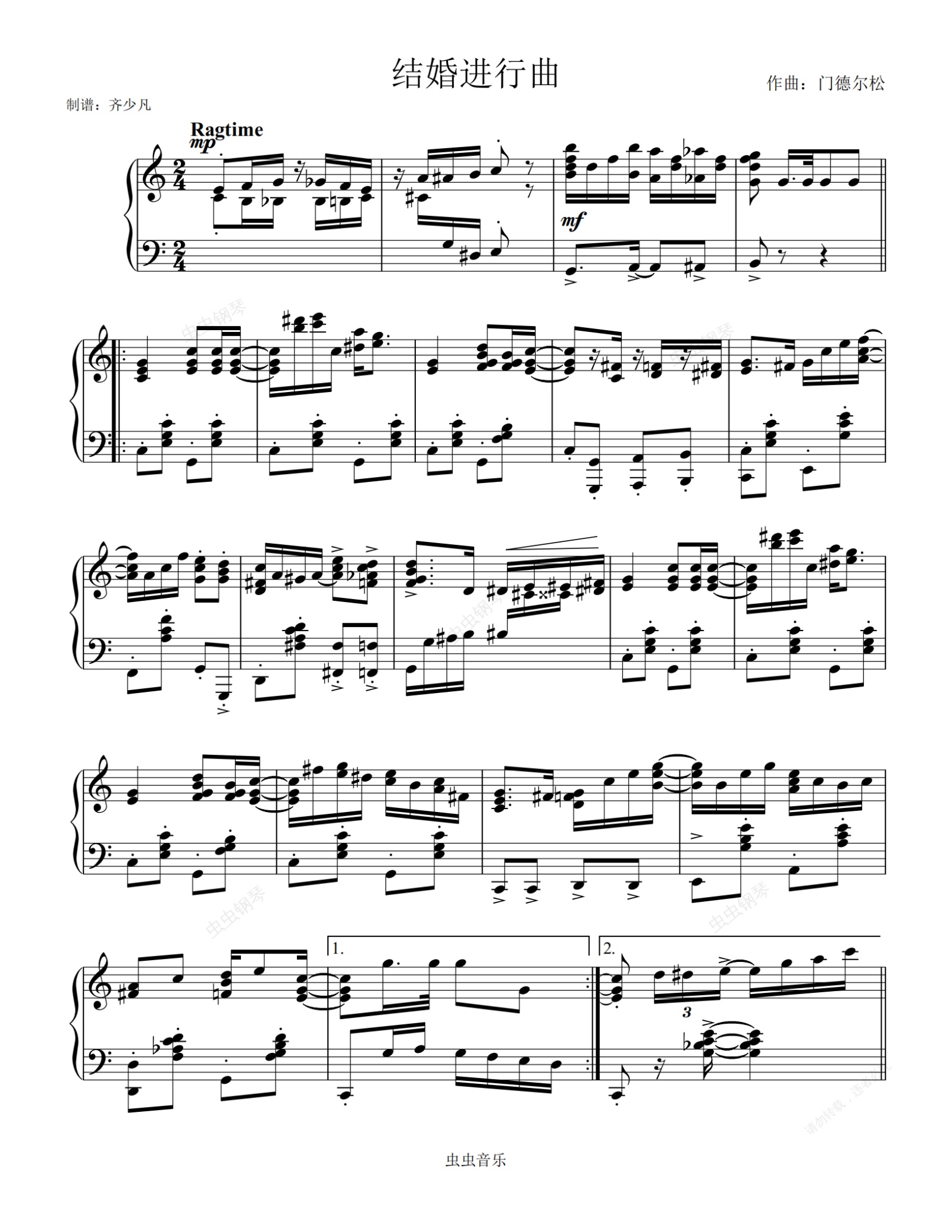 钢琴谱:【爵士】婚礼进行曲-门德尔松