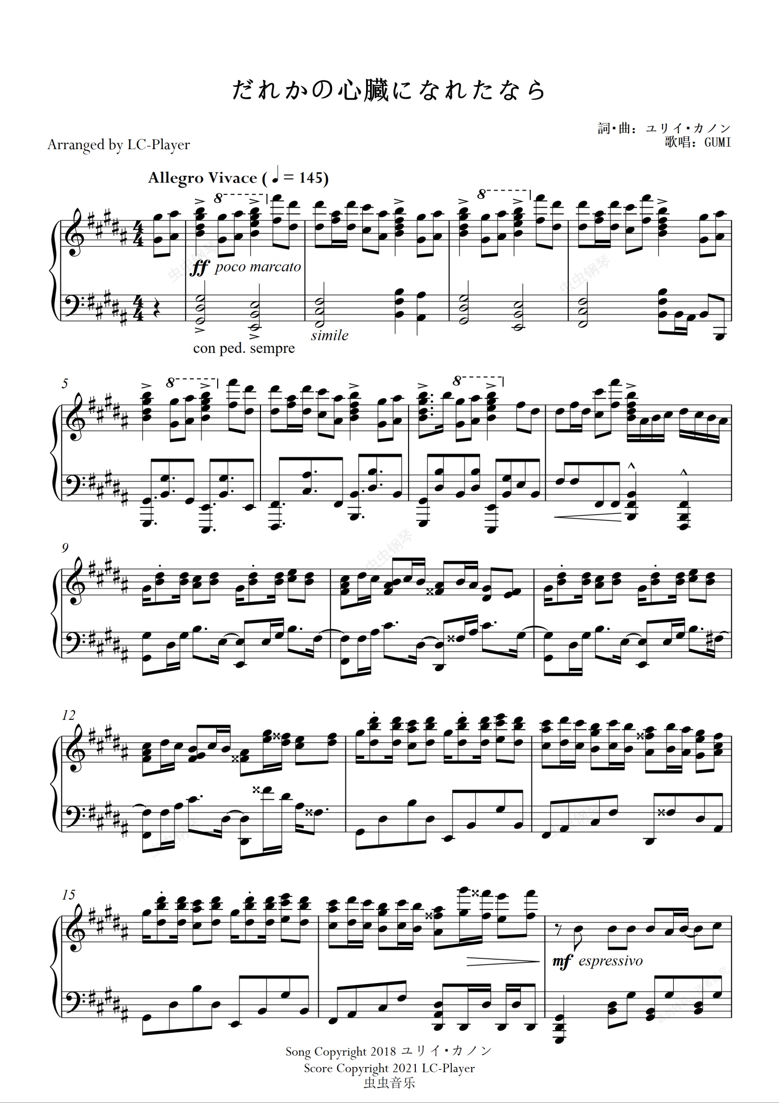 钢琴谱:だれかの心臓になれたなら(如果能成为某人的心脏,ユリイ・カノン)