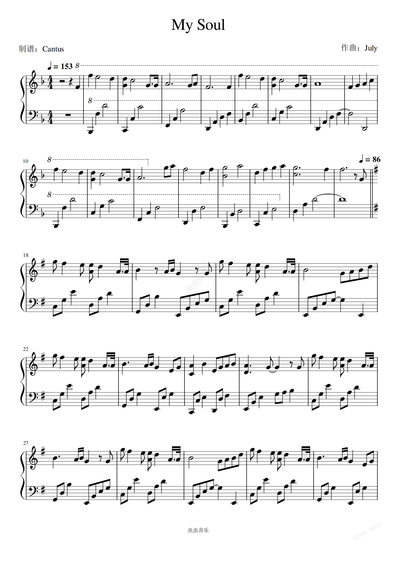 钢琴谱:My Soul/我的灵魂/忧伤还是快乐-July