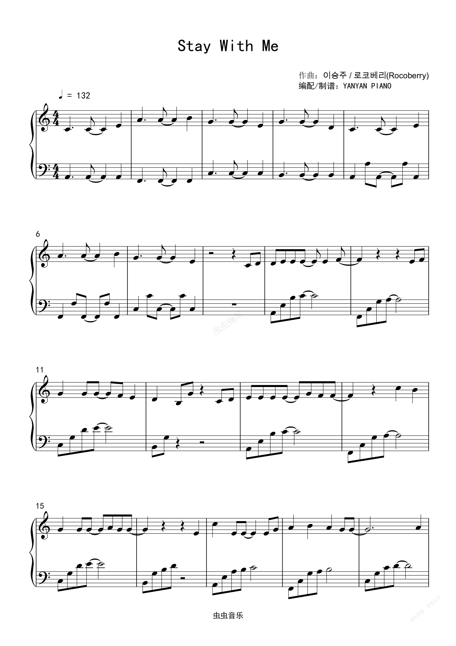 钢琴谱:鬼怪【Stay With Me】钢琴独奏C调简版