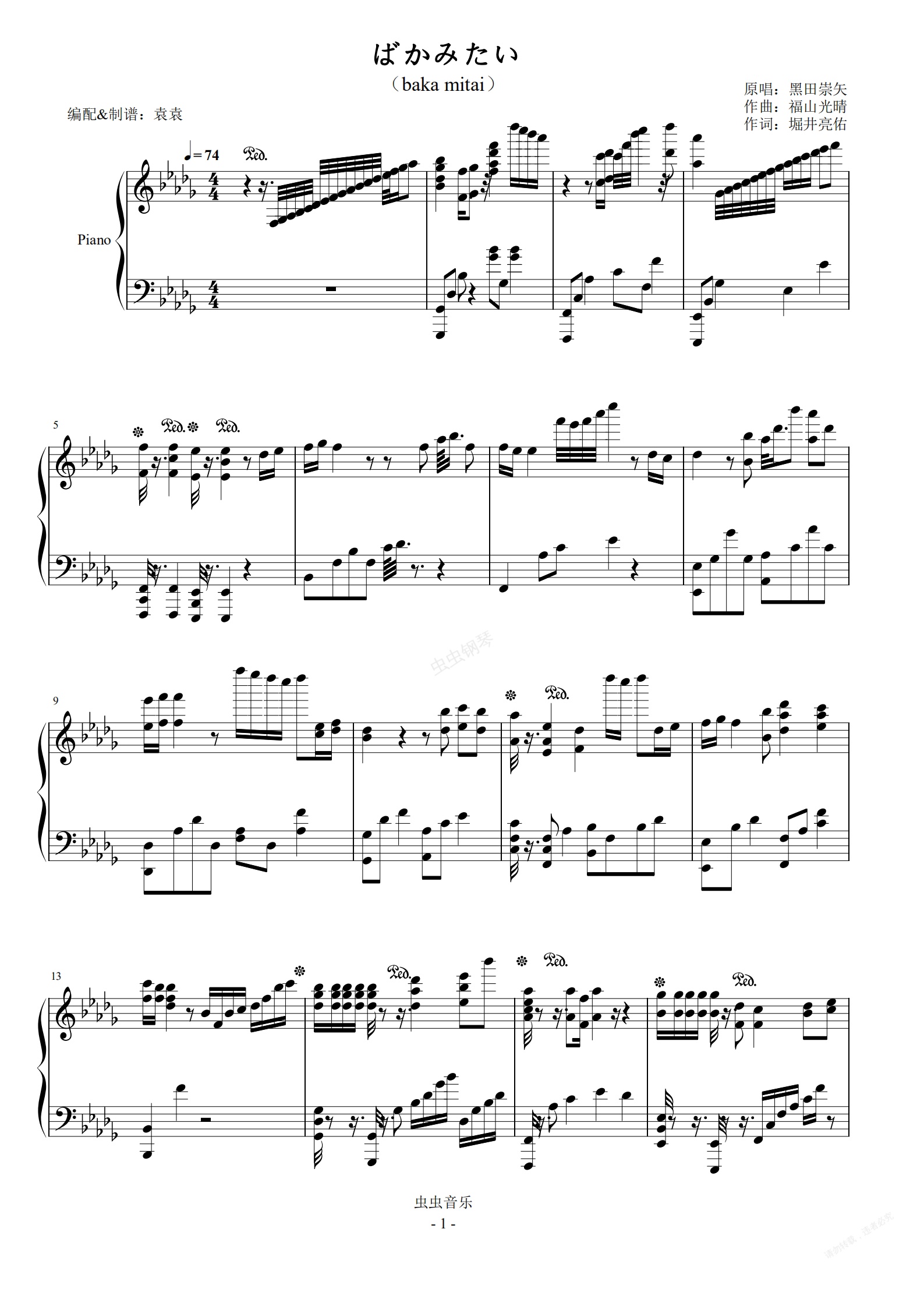 钢琴谱:DameDane 如龙游戏插曲 - ばかみたい(baka mitai)