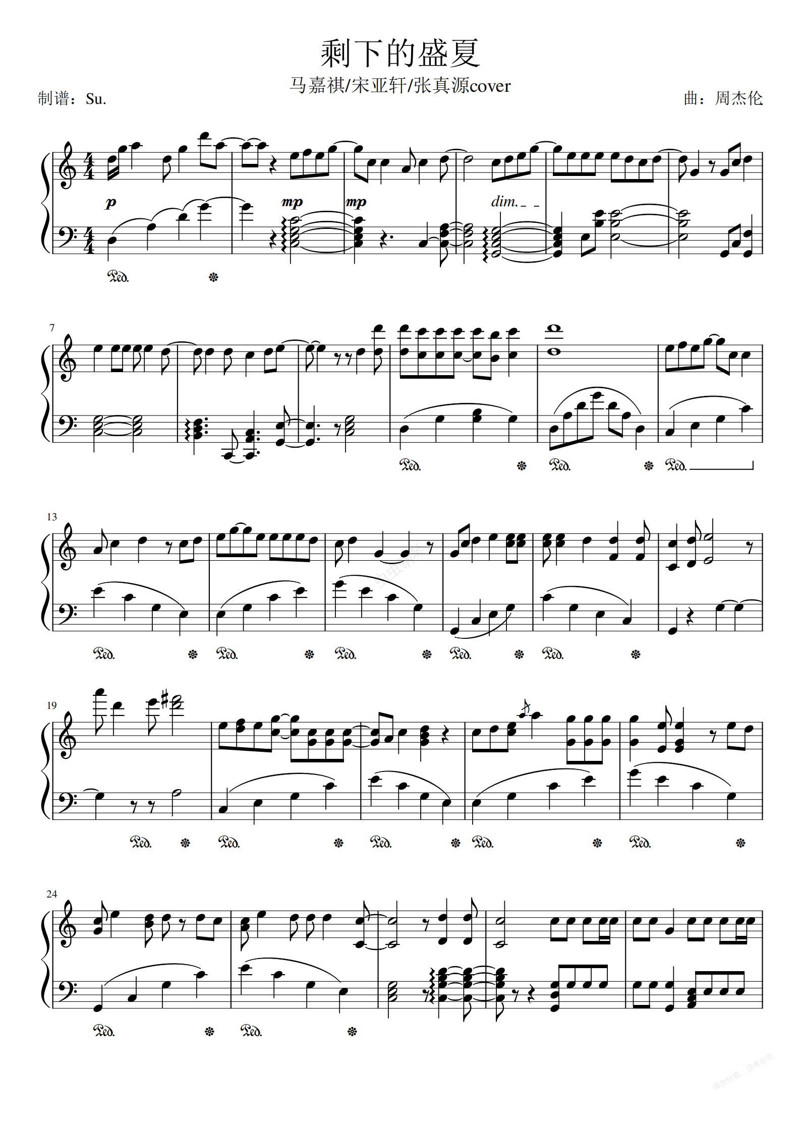 钢琴谱:剩下的盛夏(光轮1932cover.)